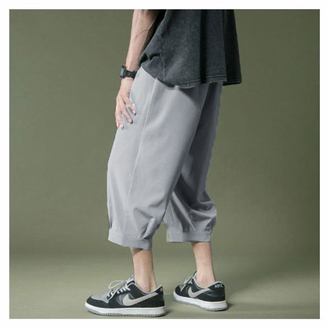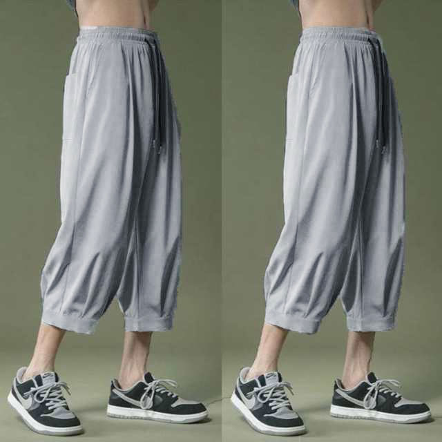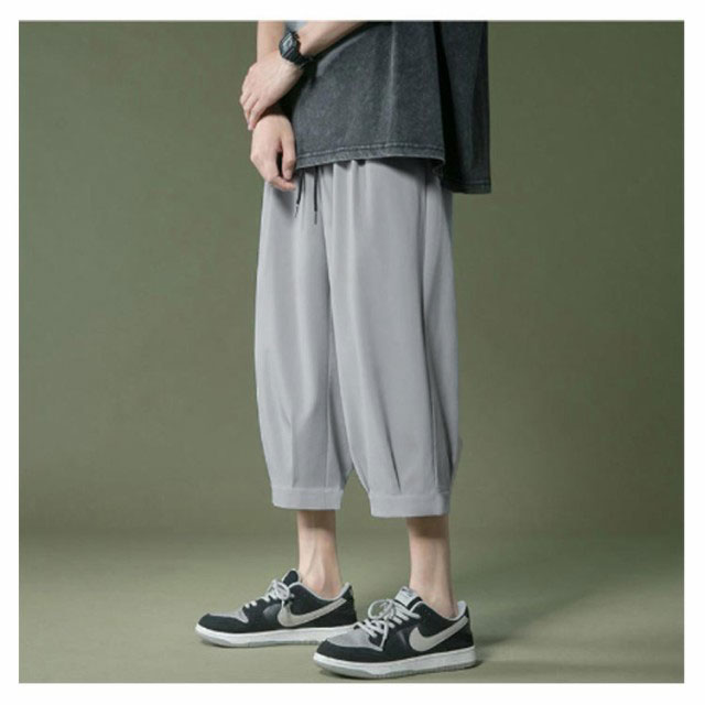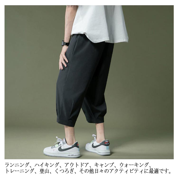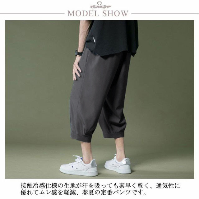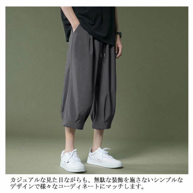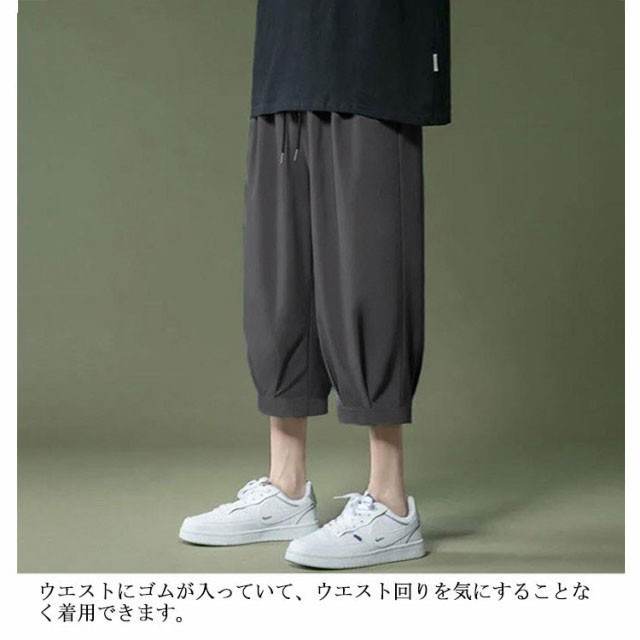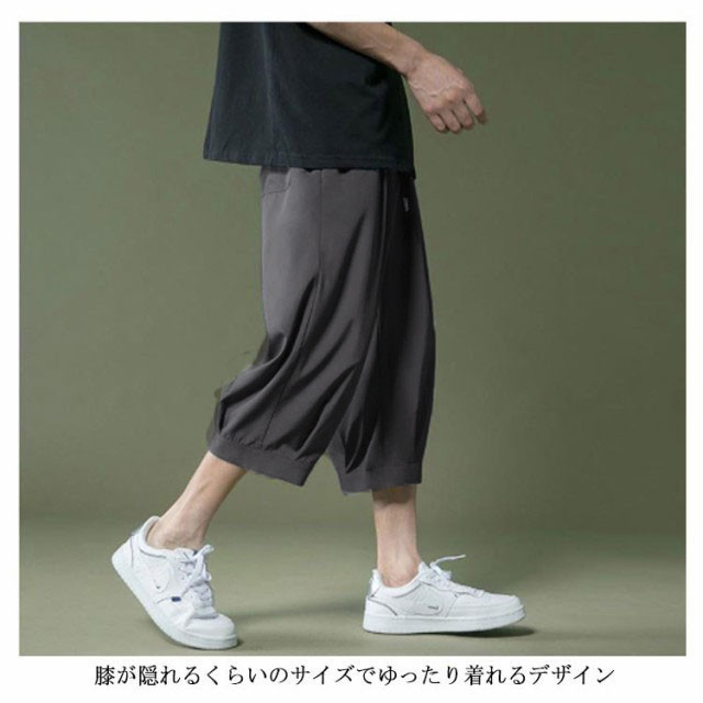 クロップドパンツ メンズパンツ 7分丈 アイスシルク パンツ 送料無料 ひんやり 春 夏 ボトムス 涼しい 接触冷感 アメカジ 男子 大きいサイズ ゆったり リラックス ウェストゴム イージーパンツ 半ズボン ワイドパンツ カジュアル 父の日 ギフト