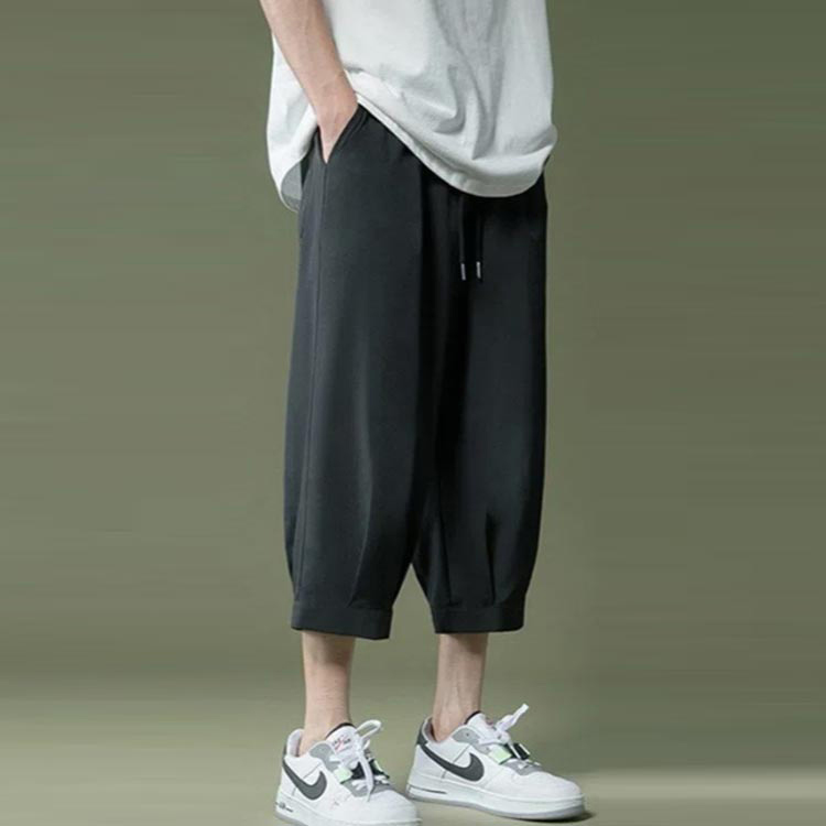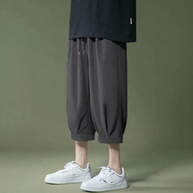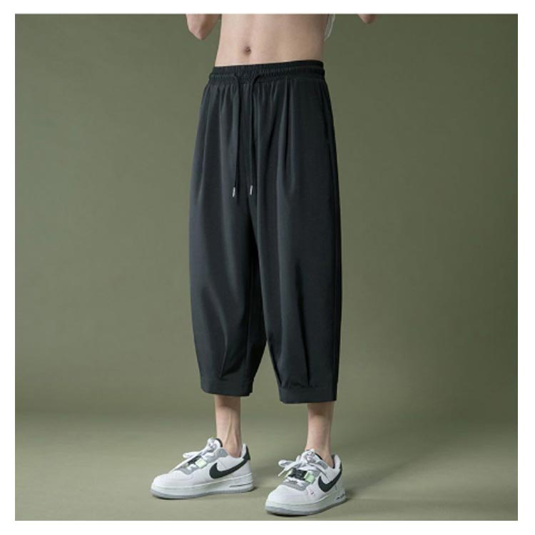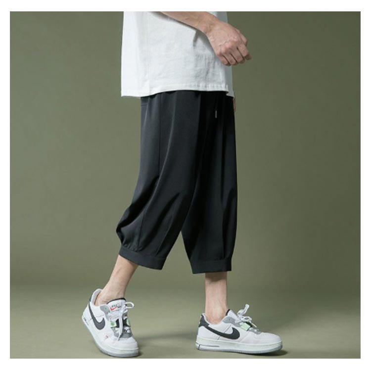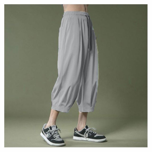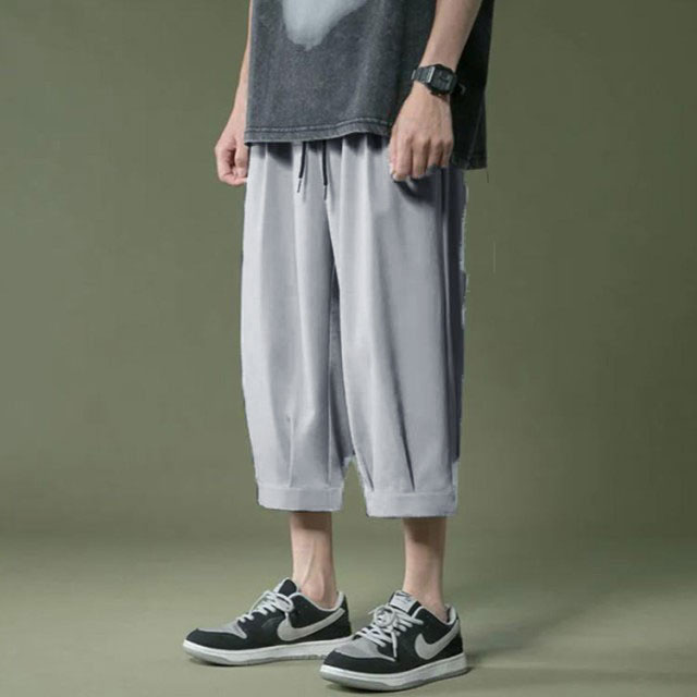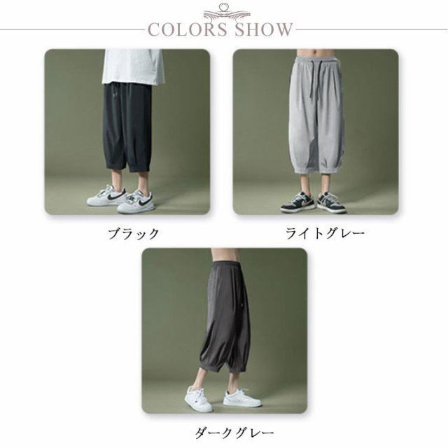 クロップドパンツ メンズパンツ 7分丈 アイスシルク パンツ 送料無料 ひんやり 春 夏 ボトムス 涼しい 接触冷感 アメカジ 男子 大きいサイズ ゆったり リラックス ウェストゴム イージーパンツ 半ズボン ワイドパンツ カジュアル 父の日 ギフト