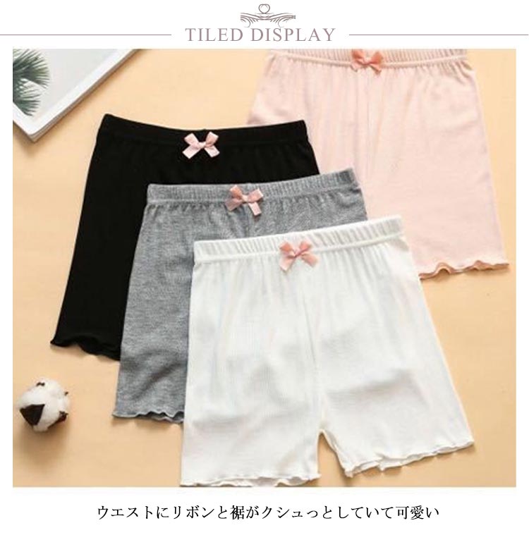 2枚入り スパッツ キッズ 3分丈 綿 女の子スパッツ 夏 女の子 オーバーパンツ 子供 下着 インナーウエア 女子服 ジュニア こどもファッション ショーツ かわいい リボン