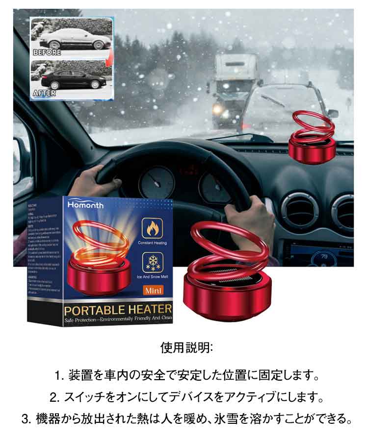 | ポータブルキネティックミニヒーターは見た目が美しいだけでなく、太陽エネルギーで駆動され、コスト効率の高いソリューションを提供します。効率的に加熱できるだけでなく、より持続可能でヒーターにも貢献します。 暖かく保つ方法。 2個セット。 運動エネルギー変換の段階!生成する運動エネルギーは利用され、効率的に穏やかで暖かい暖かさに変換されます。職場で先端のテクノロジーをシームレスに変換し、運動エネルギーを心地よい暖かさに包み込み、空間を包み込み、心地よい雰囲気を作り出します。 多機能!アロマテラピーの装飾であることに加えて、車内の空気を浄化するのにも役立ち、運転体験をより快適で楽しいものにします。 同時に、リラックスした幸せな気分をもたらすかわいい装飾品でもあります。 車内への取り付けが便利! 使用説明: 1. 装置を車内の安全で安定した位置に固定します。 2. スイッチをオンにしてデバイスをアクティブにします。 3. 機器から放出された熱は人を暖め、氷雪を溶かすことができる。 | |