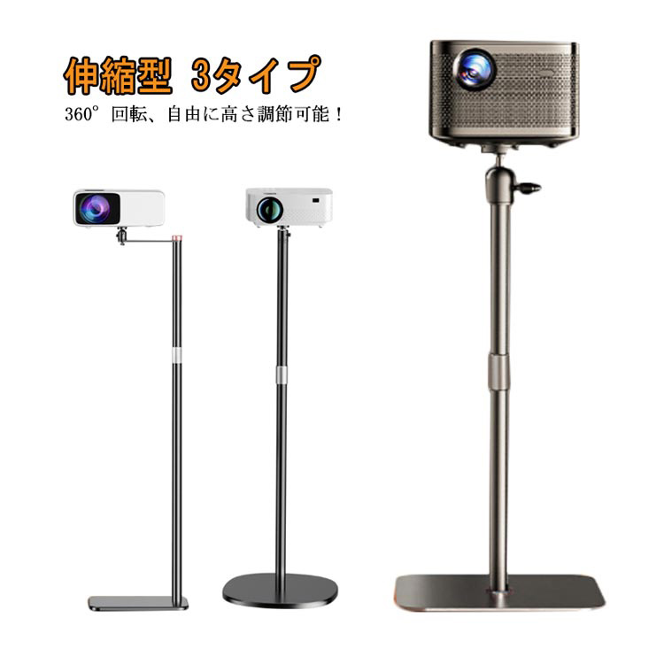 プロジェクター台 プロジェクタースタンド 床置伸縮型 壁寄せ伸縮型 トレイ付き伸縮型 3タイプ 角度無段階調整 高さ調整130cmまで 360度 角度調整 収納簡単 耐荷重5kg 1/4ネジ対応プロジェクター 会議室 事務室 発表会