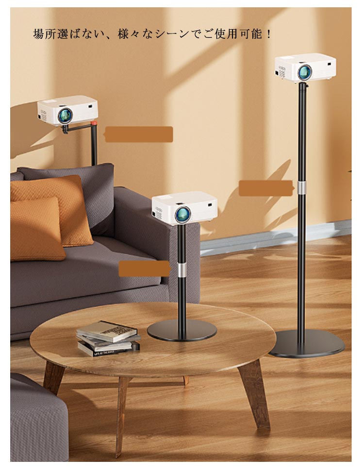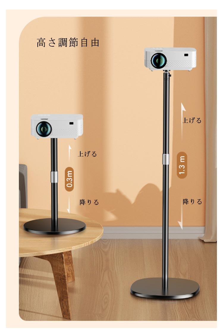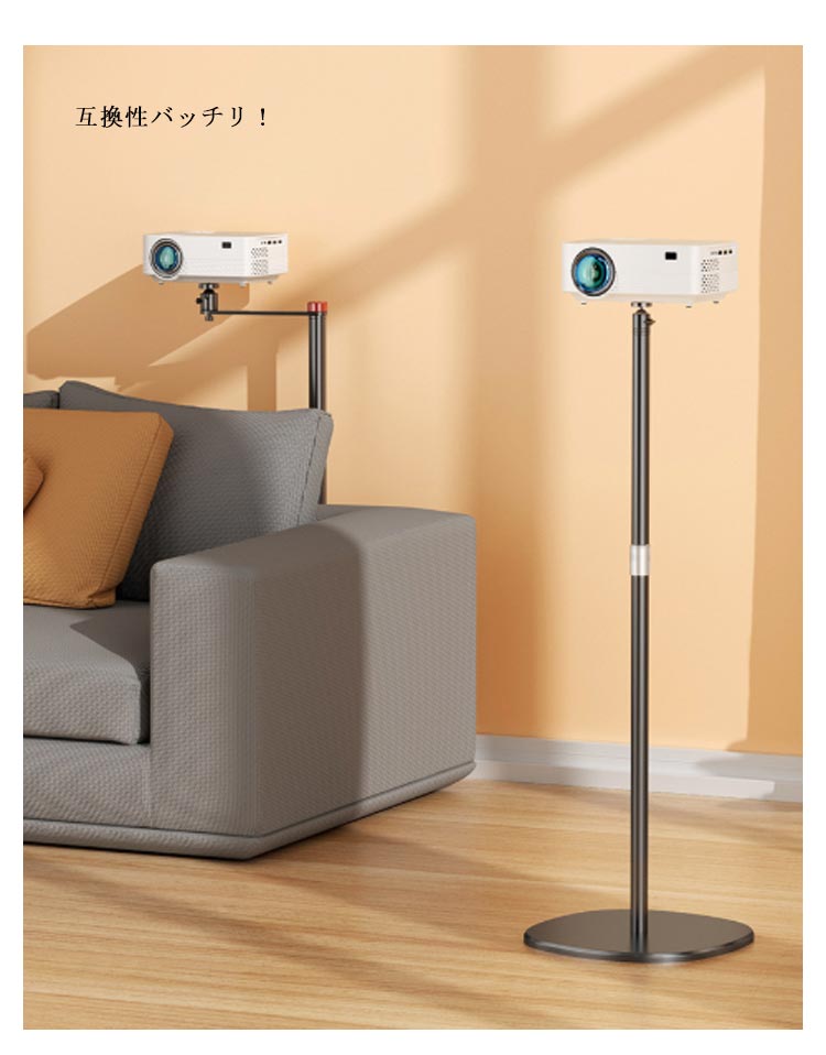 360°回転、自由に高さ調節可能!プロジェクタースタンド!安定性抜群の台座!耐久カのある金属パーツ。場所選ばない、様々なシーンでご使用可能!互換性バッチリ!隠せるプロジェクタースタンドだからインテリアに響かない。雲台カーブデザイン、壁寄せ設置可能、省スペース。