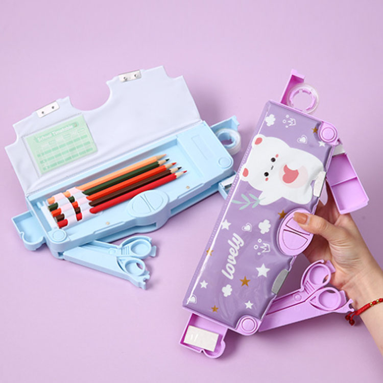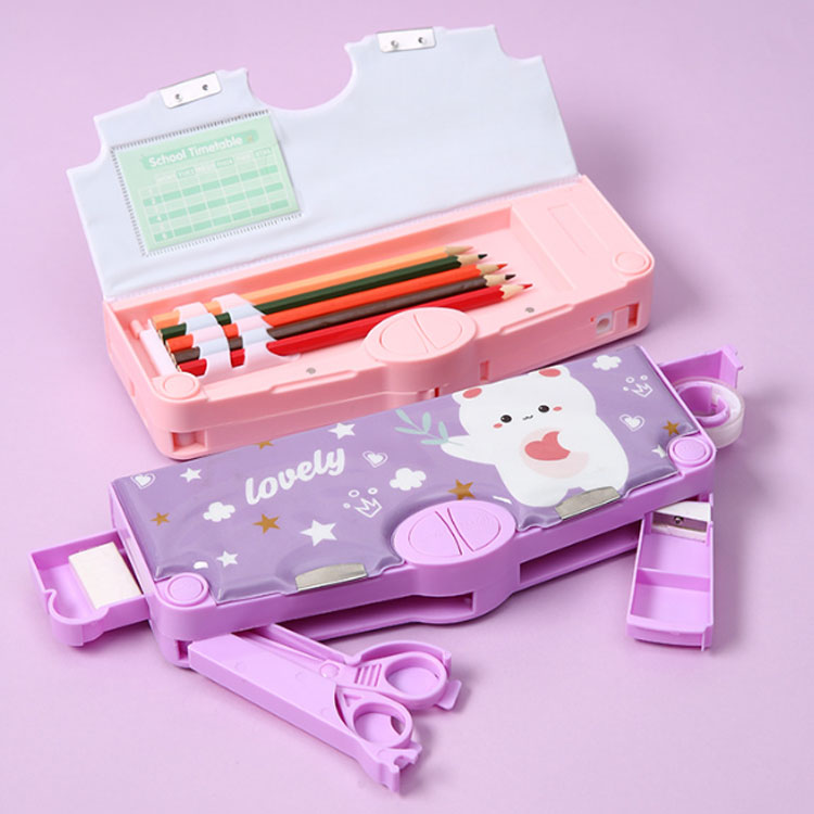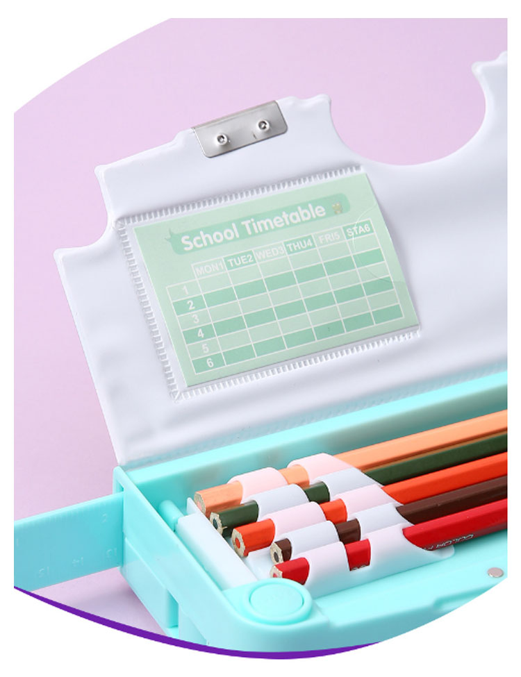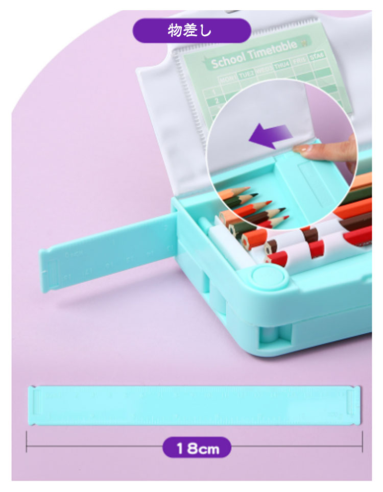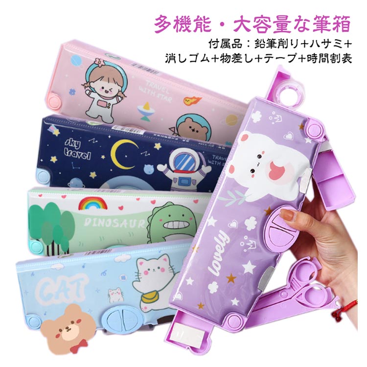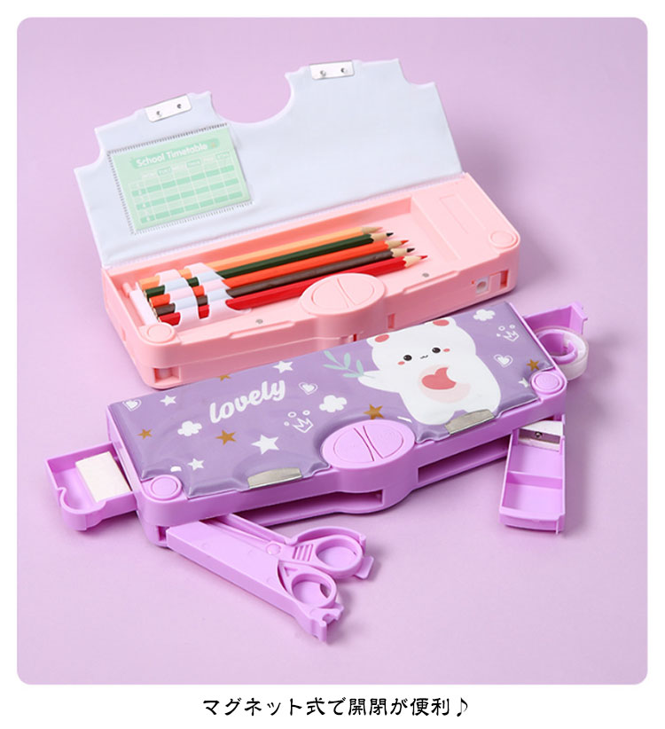 ペンケース 筆箱 多機能 大容量 鉛筆削り付 ふでばこ 小学生 男の子 女の子 ハサミ付 消しゴム付 物差し付き テープ収納リング 筆入れ 時間割表 マグネット コンパクト 小学生 文具 誕生日 プレゼント 小物入れ ギフト 文房具 かわいい おしゃれ
