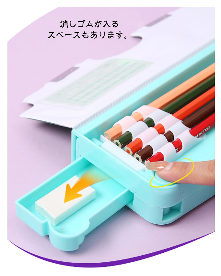 | 【多機能?大容量な筆箱】 【付属品:鉛筆削り+ハサミ+消しゴム+物差し+テープ+時間割表】 高品質のプラスチックで作られ、ポータブル、ハード、落下防止、非毒性、無害です。 スリムで軽量なのにたっぷり収納できちゃうのが嬉しい? 消しゴムが入るスペースもあります。 物差しやテープなどの小物も収納できます。 機能性はバッチリなので大活躍間違いなし。 マグネット式で開閉が便利? 多機能?大容量な筆箱。お子様へのプレゼントに最適です。 | |