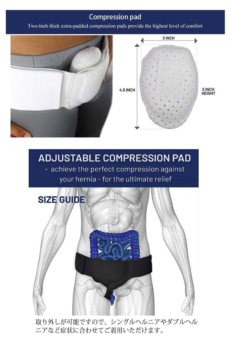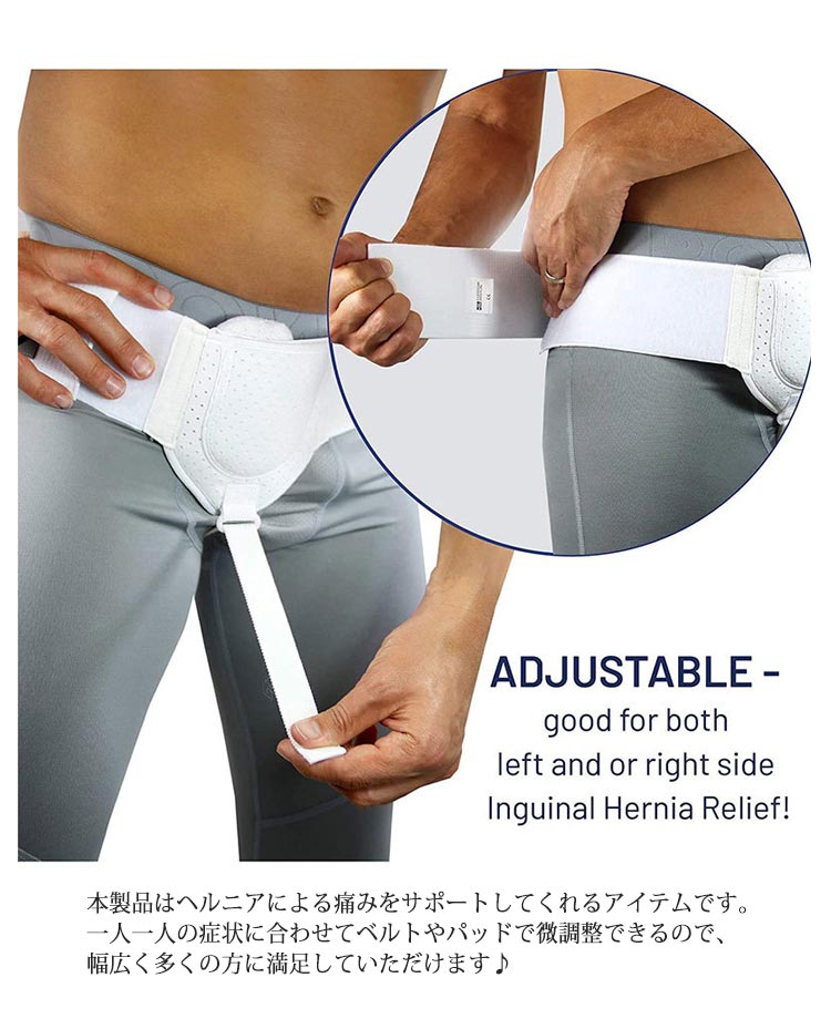 手術後や日常生活で着用していただくことで患部を優しく保護します。本製品はヘルニアによる痛みをサポートしてくれるアイテムです。一人一人の症状に合わせてベルトやパッドで微調整できるので、幅広く多くの方に満足していただけます♪取り外しが可能ですので、シングルヘルニアやダブルヘルニアなど症状に合わせてご着用いただけます。高品質なネオプレン製で肌触りも良く、耐久性に優れております。多孔質のデザインは通気性があり、長時間の着用も快適です♪内側には滑り止めの効果があるシリコンストリップがあり、動いたときにずれるのを防いでくれます。また、水洗いも可能ですので、繰り返し衛生的にご使用いただけます!男女兼用のユニセックスデザインで、ご自身に合うサイズでご着用いただけます。