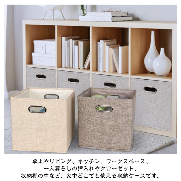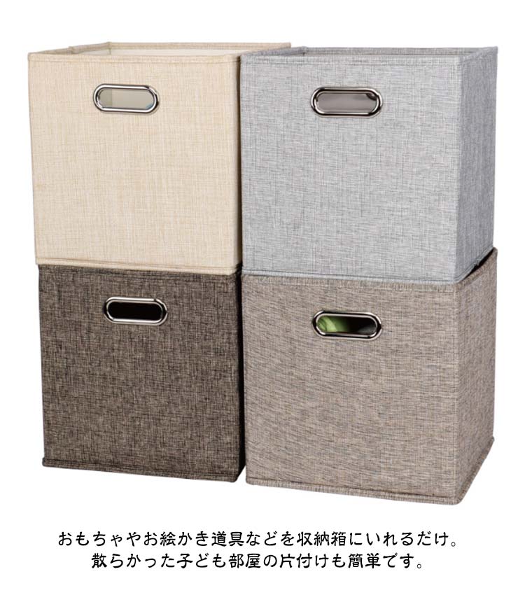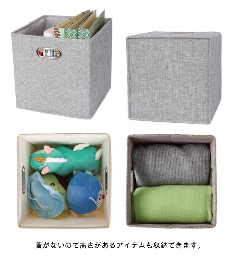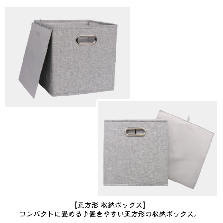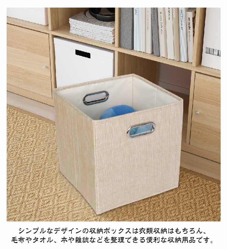 【置きやすい正方形】シンプルなデザインの収納ボックスは衣類収納はもちろん、毛布やタオル、本や雑誌などを整理できる便利な収納用品です。蓋がないので高さがあるアイテムも収納できます。【スモールスペースに使える】卓上やリビング、キッチン、ワークスペース、一人暮らしの押入れやクローゼット、収納棚の中など、家中どこでも使える収納ケースです。【子供部屋の整理整頓に】おもちゃやお絵かき道具などを収納箱にいれるだけ。散らかった子ども部屋の片付けも簡単です。【便利な取っ手付き】丈夫な金属で補強された取っ手付き。引き出しのようにも使えて、持ち運びもラクにできます。【正方形 収納ボックス】コンパクトに畳める♪置きやすい正方形の収納ボックス。