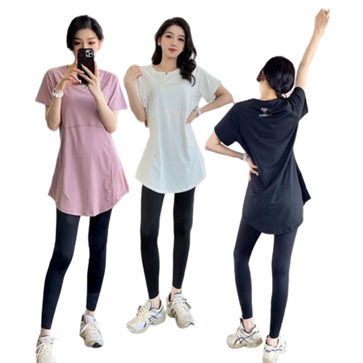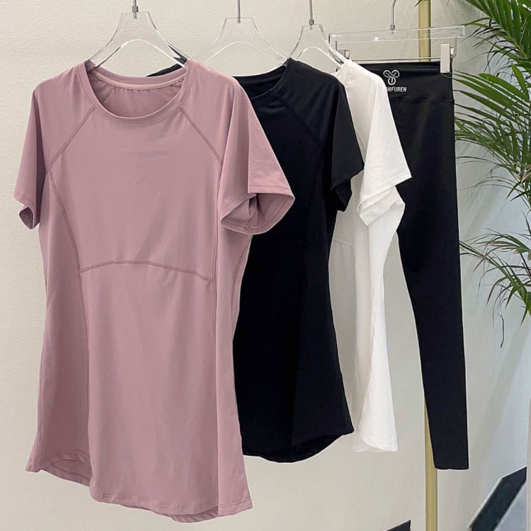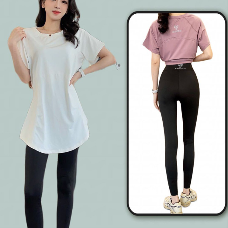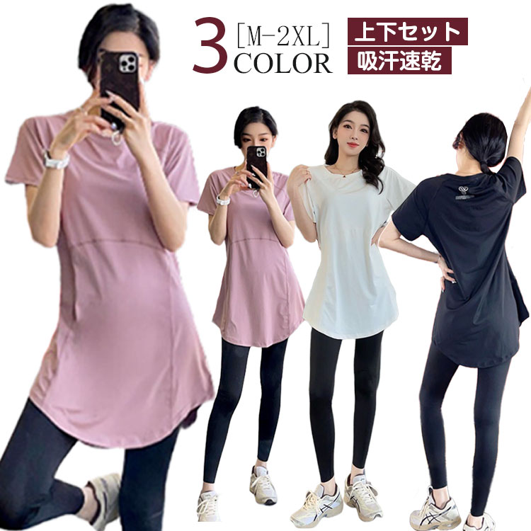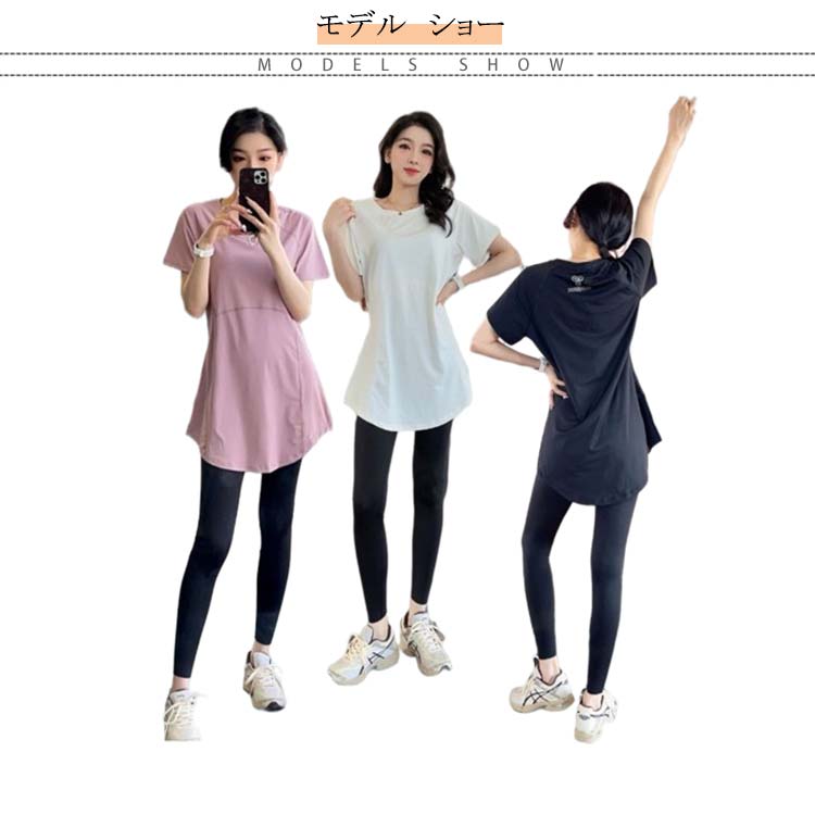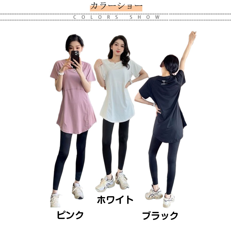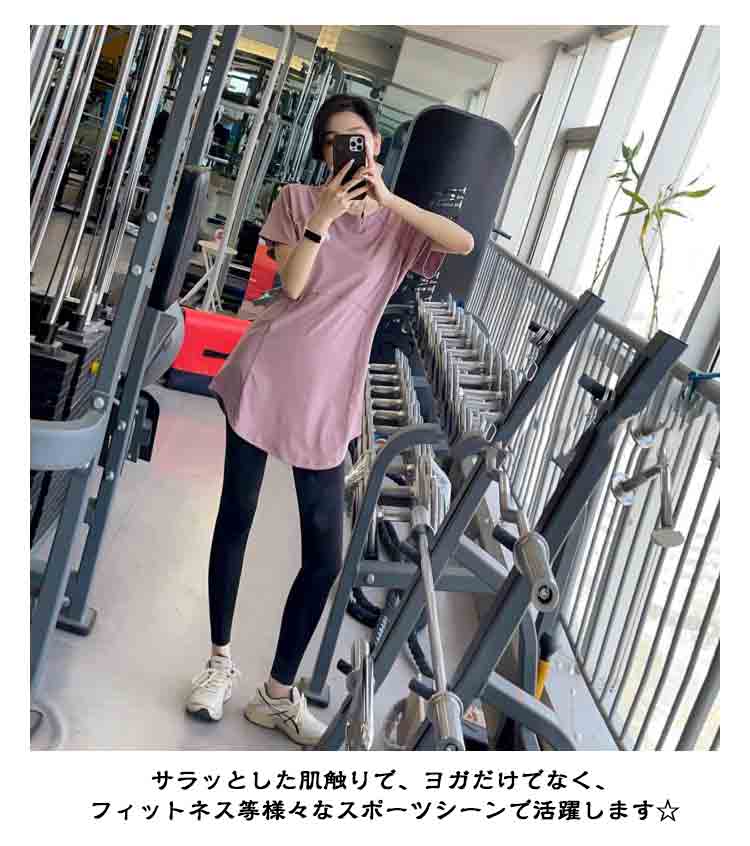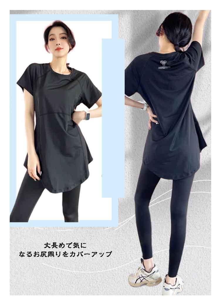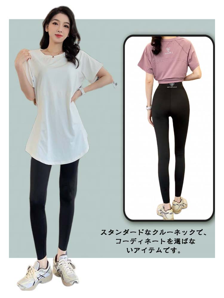 ヨガウェア 上下セット 速乾 レディース 半袖 tシャツ レギンス ヨガトップス ピラティス ウェア ロング丈 おしゃれ スポーツウェア ホットヨガ フィットネス 大きいサイズ ドライ 無地 スパッツ パンツ かわいい 黒 ジムウェア