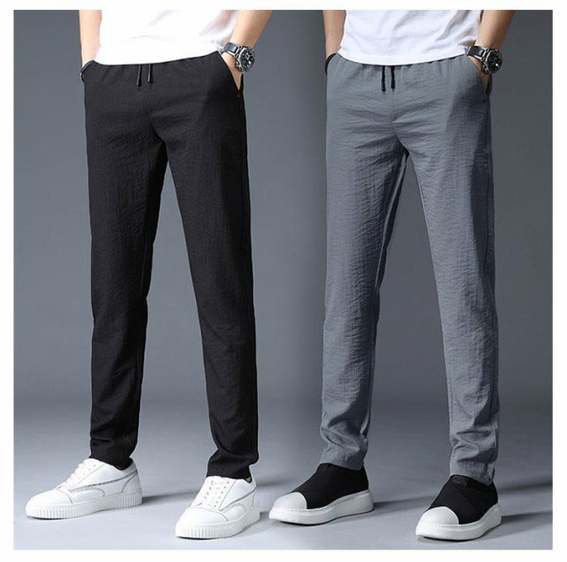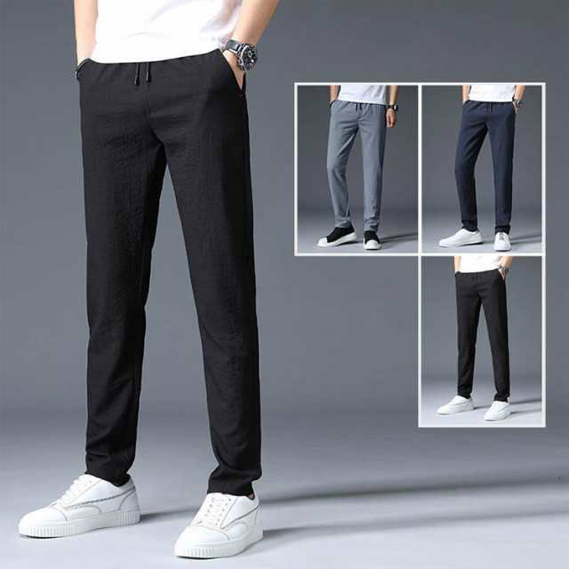 ロングパンツ 2本セット 冷感パンツ 接触冷感 速乾 涼しい メンズ 夏 薄手 ゴルフパンツ ランニングウエア 長ズボン 通気 ゆったり ひんやり アイスシルク チノパン ストレートパンツ スポーツ カジュアル ウエストゴム 無地 おしゃれ 夏物 春 夏