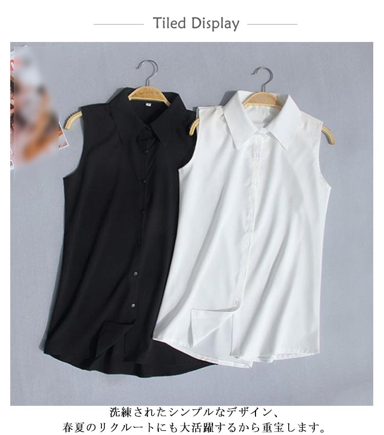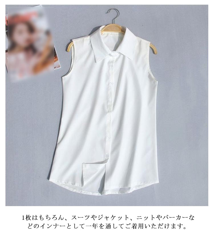 襟付きノースリーブシャツ袖なしの薄手デザインなので、春夏のスーツやカーディガンINしてもゴワつかず、アウターを響きにくいく、スッキリ綺麗なシルエットをキープ。洗練されたシンプルなデザイン、春夏のリクルートにも大活躍するから重宝します。さらりとした柔らかな生地、シワになりくく、洗濯okなので、お手入れかんたん。1枚はもちろん、スーツやジャケット、ニットやパーカーなどのインナーとして一年を通してご着用いただけます。