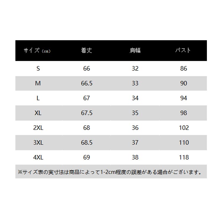 | サイズ | S M L XL 2XL 3XL 4XL |