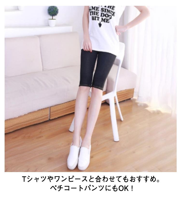 おしゃれな新作!フェイクデニムのレギンスです。ストレッチ性と履き心地の最適バランスにこだわった一品。シンプルなデザインだからデイリーに着回ししやすく多様なスタイルと相性バッチリです。Tシャツやワンピースと合わせてもおすすめ。ペチコートパンツにもOK!