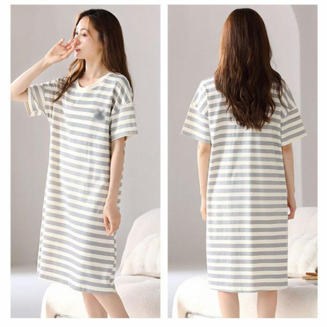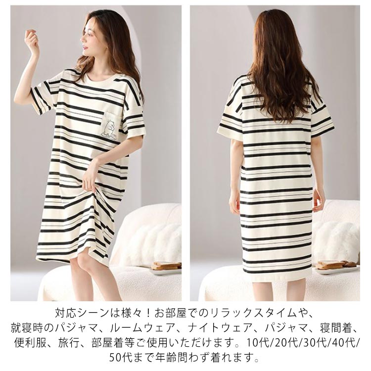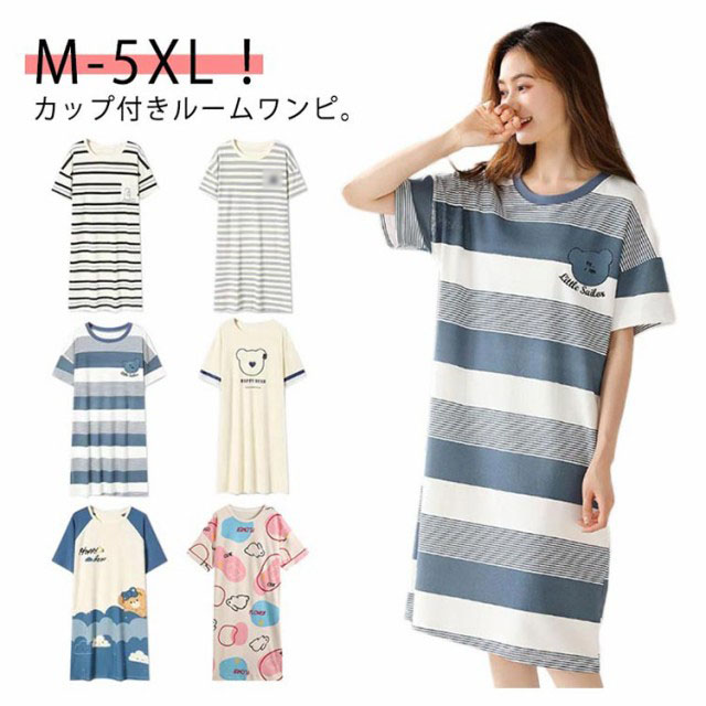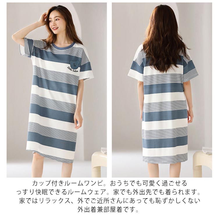 カップ付き ワンピース ルームウェア レディース ロングTシャツワンピース 半袖 パジャマ ブラカップ付き 綿 コットン ゆったり 大きいサイズ 部屋着 おしゃれ かわいい 薄手 春 夏 秋 シンプル カジュアル ボーダー リラックスウェア 送料無料