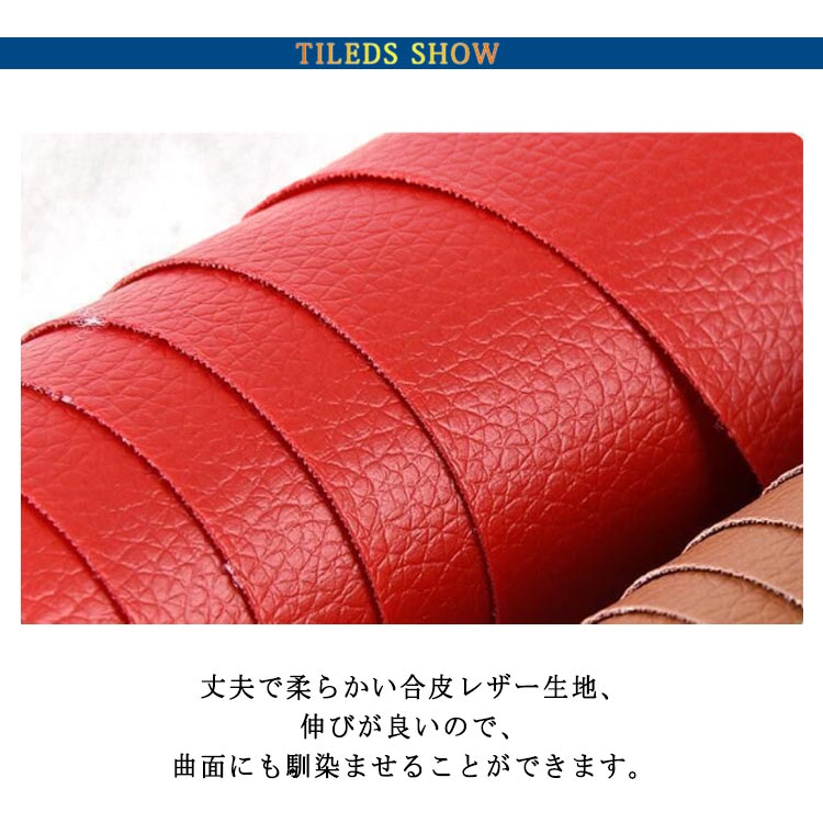| 全20色!貼るレザー!防水、柔らかめ、接着性抜群! 丈夫で柔らかい合皮レザー生地、伸びが良いので、曲面にも馴染ませることができます。 表面は合皮無地、若干光沢があり、高級感があります。本物のような質感で高級感を演出してくれます! 合皮レザー生地の裏面が接着シールになっており、様々な物に貼り付けることが出来ます。接着剥の粘着力が優れていて簡単に剥がれません。 ご自宅にはハサミで簡単に作業が可能、扱いやすさも大きな魅力の便利レザーシートです。 豊富なカラーバエーション気軽に、インテリアのイメージチェンジも楽しめます!自分好みのインテリアが実現! 補修シールとして自転車のサドル?車のシート?バイクのシート?ソファーのシートなどの張り替え、修補、破れ隠し、椅子の座面張替。壁紙、インテリア、DIYなどにも使用でき、色々な用途にご利用いただくことができます。化粧箱、ギフトケースなどに貼るにも最適です。 | |
