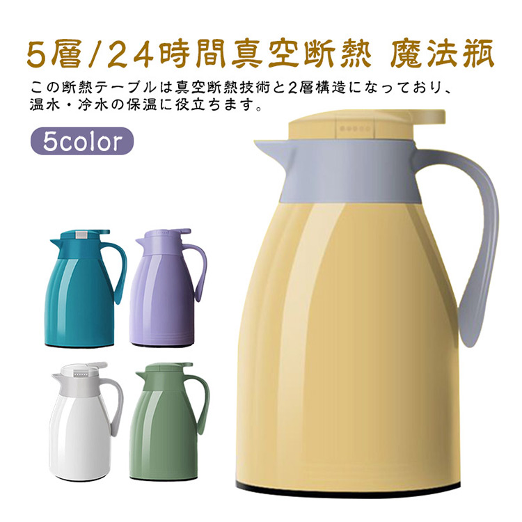 5層/24時間真空断熱 魔法瓶 1.9リットル 1.6リットル 1リットル 断熱ポット 保温ポット 家庭用ケトル 大容量 まほうびん ポット おしゃれ 北欧 保温 保冷 寮 家庭用 キッチン 寮 ワンタッチ 広口 便利 開閉簡単