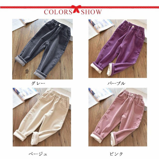 コーデュロイ 裏起毛 キッズ ロングパンツ 子供服 女の子 男の子 あったか 無地 長ズボン ユニセックス サルエルパンツ 無地 ボトムス 子ども 90 100 110 120 130 140cm お洒落 秋物 冬物 ジュニア こども 防寒 送料無料
