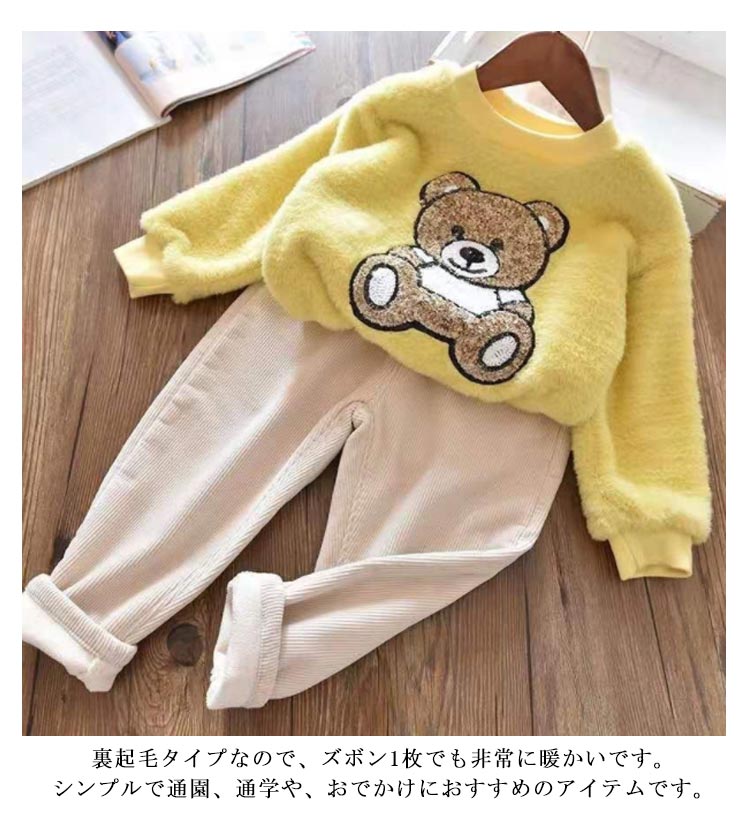 | 秋冬のマストバイアイテム!裏起毛のコーデュロイロングパンツ。 ウエストがゴム使用なので、着脱しやすいです。飾りボタンもおしゃれです。 裏起毛タイプなので、ズボン1枚でも非常に暖かいです。シンプルで通園、通学や、おでかけにおすすめのアイテムです。 なカラー展開で使いやすく、ユニセックスで着られるデザインです。 リラックスしたシルエットで履き心地抜群。 | |