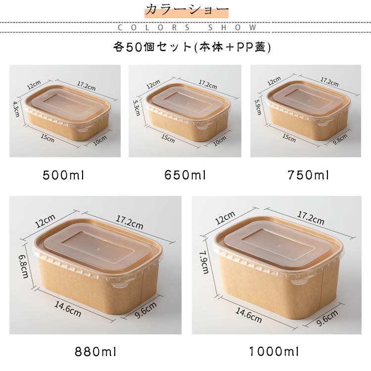 使い捨て 弁当箱 透明蓋 セット 50個入り フードパック テイクアウト 容器 おしゃれ クラフト紙 紙容器 紙 紙バック ボックス 丼容器 弁当 弁当容器 食品容器 宅配 持ち帰り 業務用 使い捨て 弁当箱 お弁当パック 容器 ランチボックス 耐油性 防水 電子レンジ対応 冷凍可能