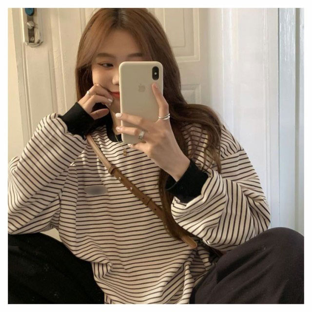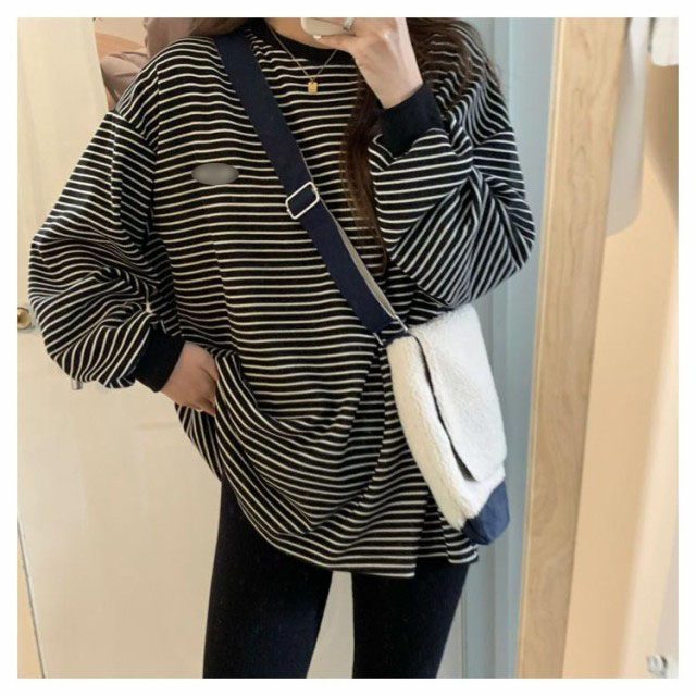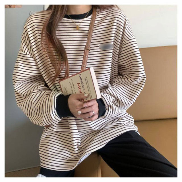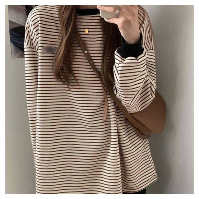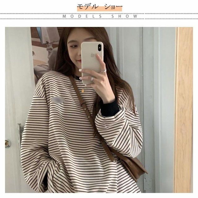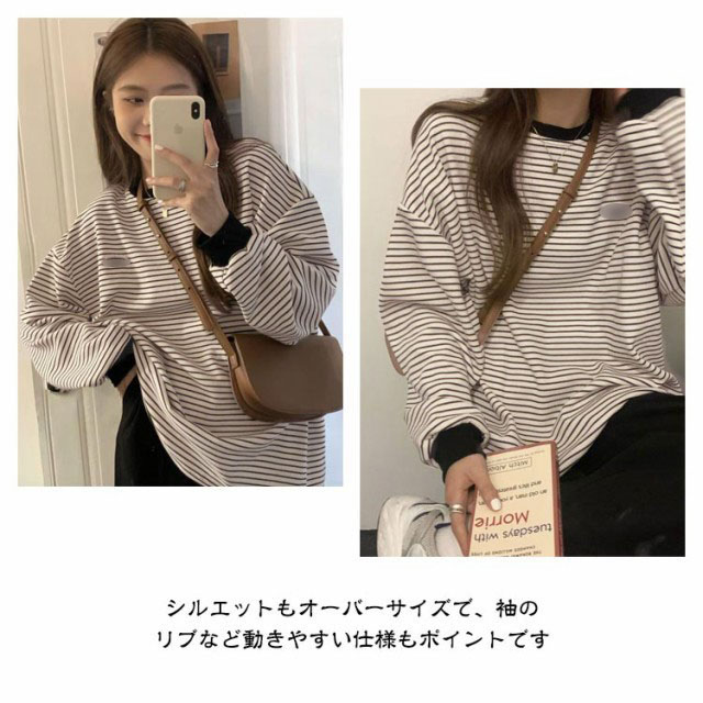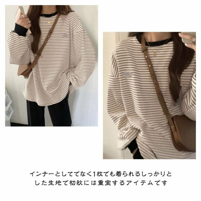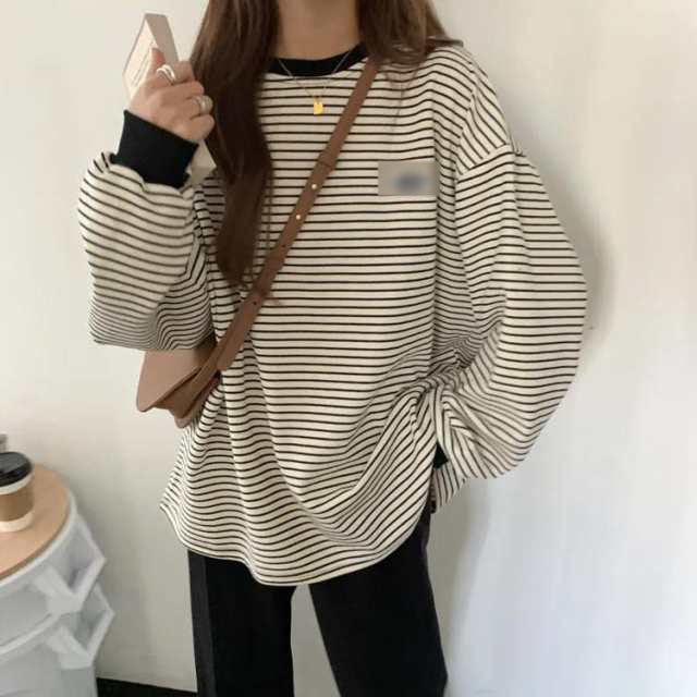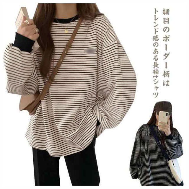 Tシャツ レディース 長袖 カットソー クルーネック ボーダー柄 カジュアル トップス 女性用 ロンT 長T シンプル ゆったり 大きいサイズ プルオーバー インナー ティーシャツ ティシャツ 可愛い 秋 春 春服 送料無料