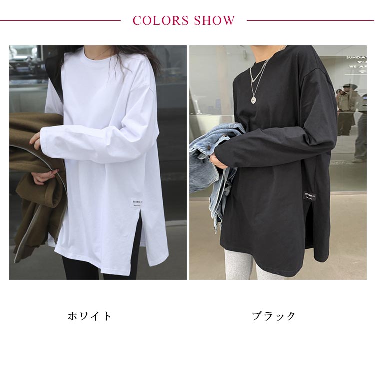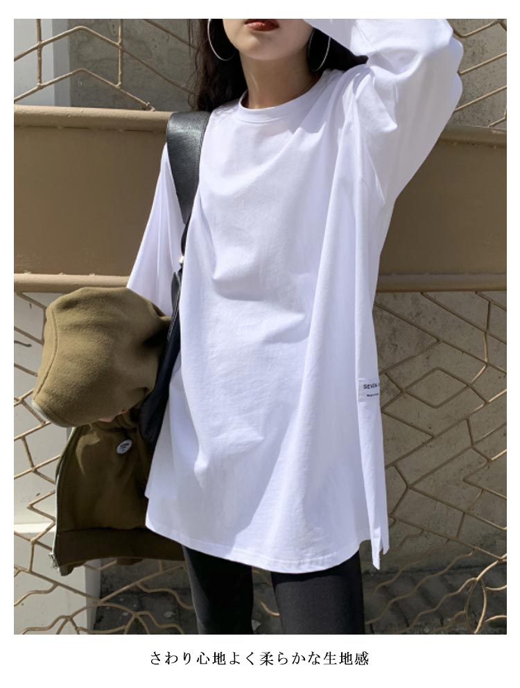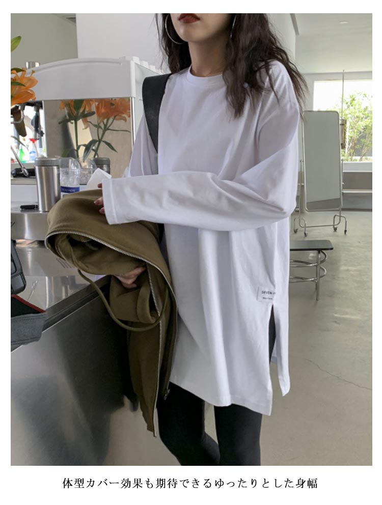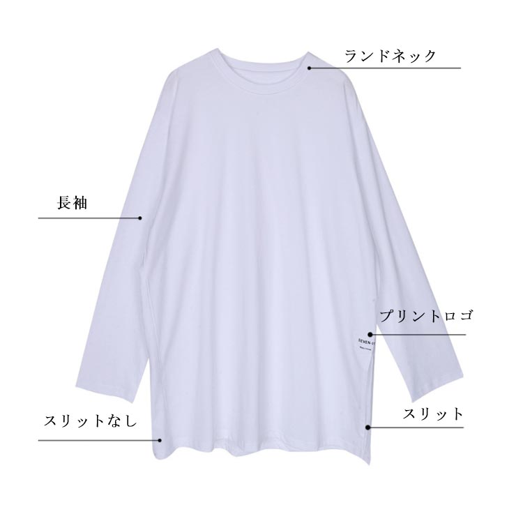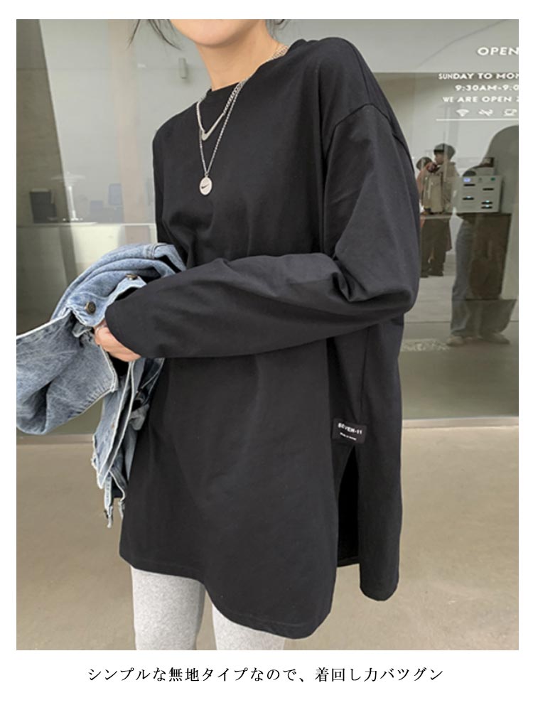 長袖tシャツ カットソー 無地 ロングTシャツ Tシャツ ロング丈 レディース 長袖 ラウンドネック ドロップショルダー 無地Tシャツ ゆったり ゆるTシャツ ロゴ スリット プルオーバー トップス お洒落 カジュアル