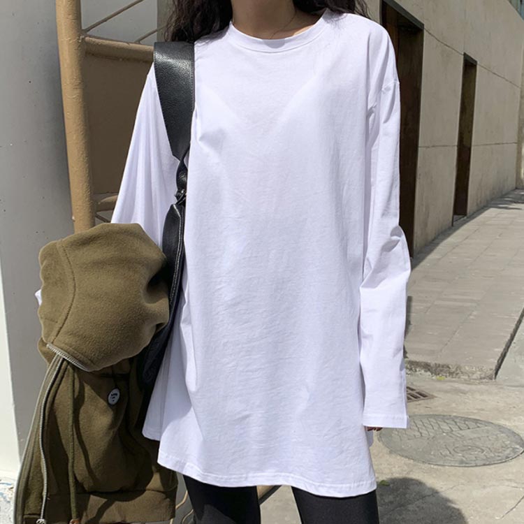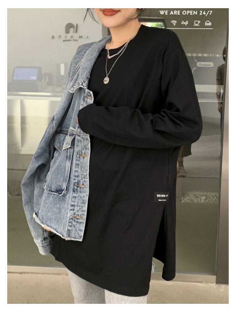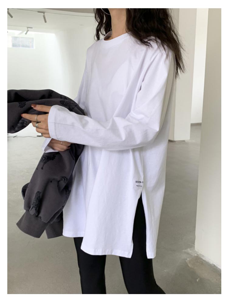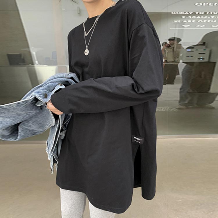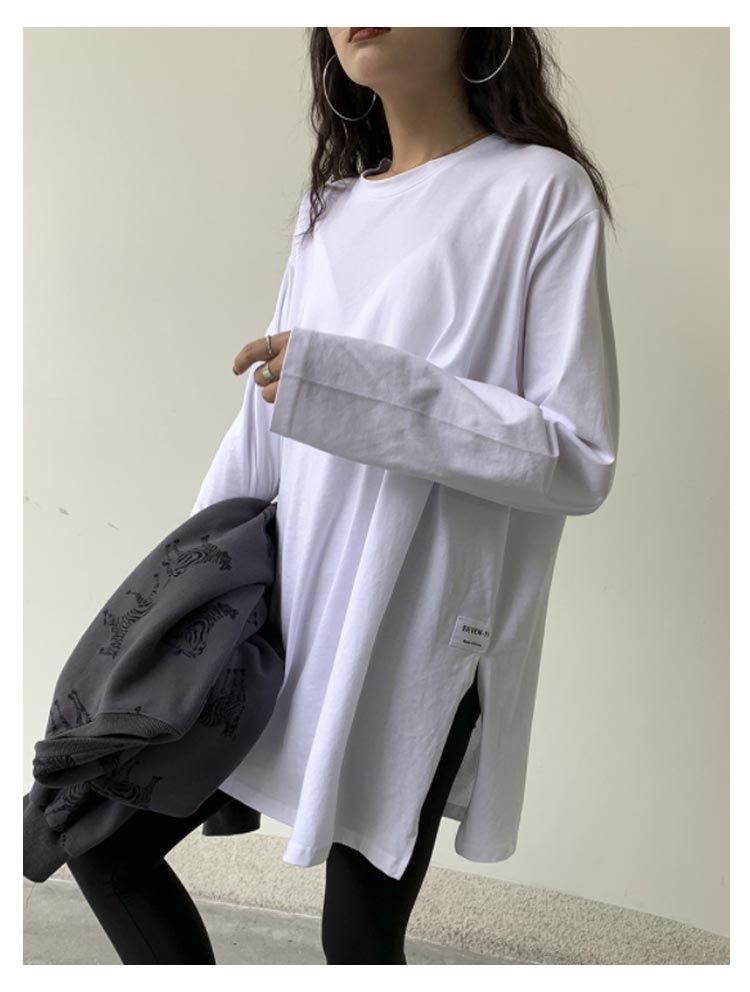 長袖tシャツ カットソー 無地 ロングTシャツ Tシャツ ロング丈 レディース 長袖 ラウンドネック ドロップショルダー 無地Tシャツ ゆったり ゆるTシャツ ロゴ スリット プルオーバー トップス お洒落 カジュアル