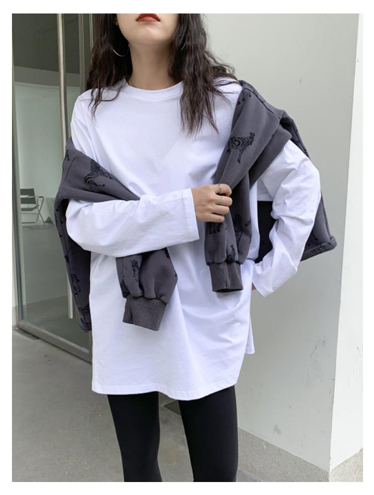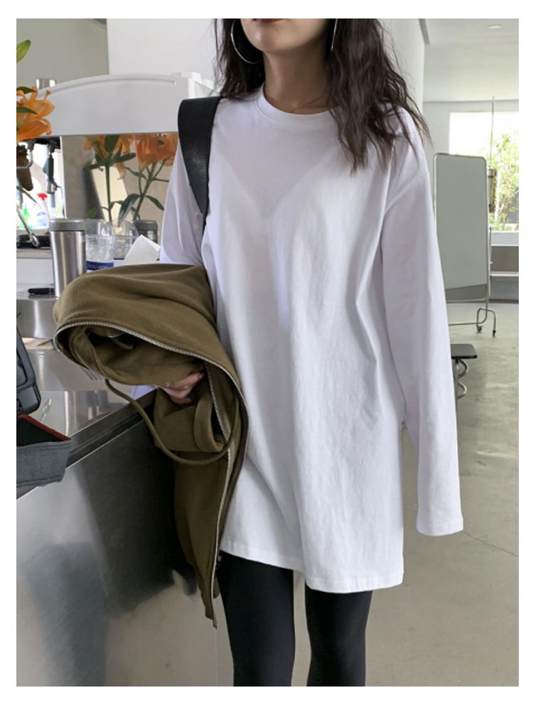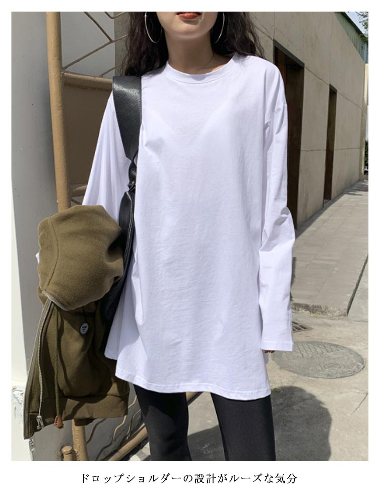 ルーズな雰囲気が溢れるオーバーサイズ風ロングTシャツドロップショルダーの設計がルーズな気分さわり心地よく柔らかな生地感体型カバー効果も期待できるゆったりとした身幅シンプルな無地タイプなので、着回し力バツグン