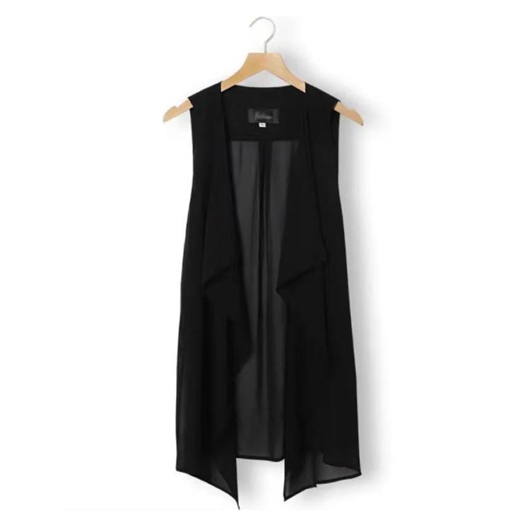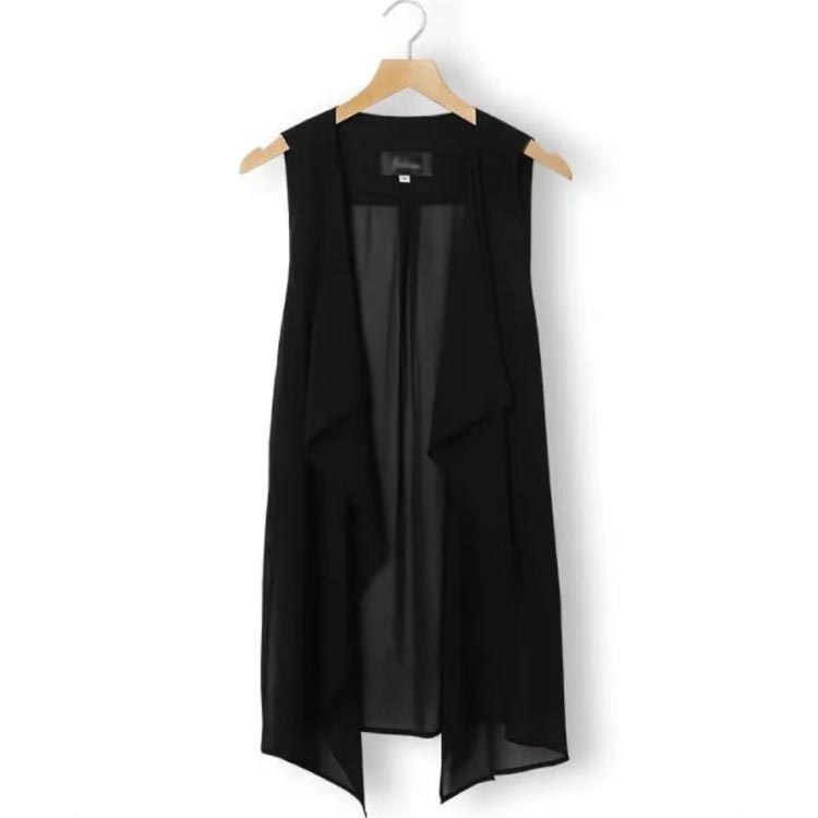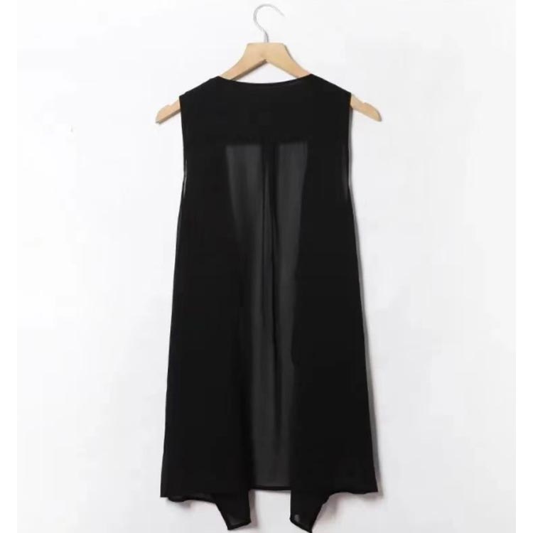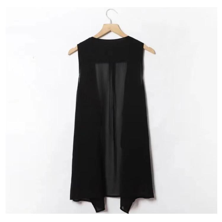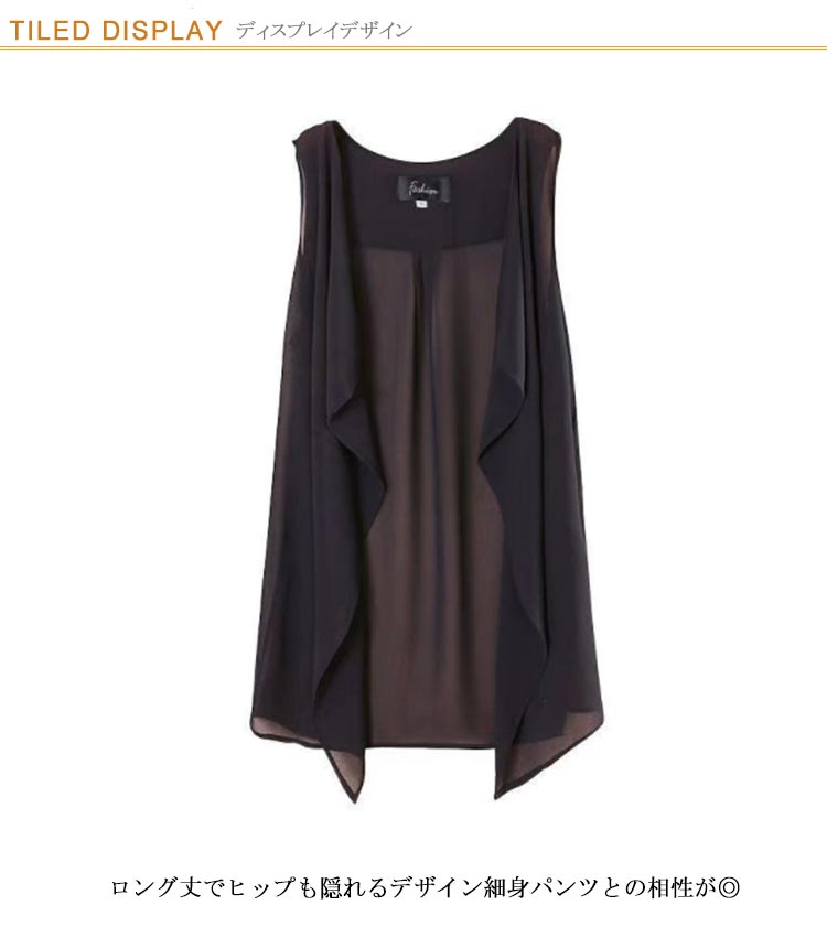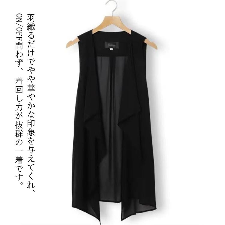 ジレ レディース ロングジレ シフォンベスト ロングベスト 春 夏 ロングベスト 前開き ロング丈 薄手 トレンチベスト ノースリーブ カーディガン ガウン 羽織り おしゃれ 無地 シンプル きれいめ 軽量 着回し エレガント 黒 20代 30代 40代 50代