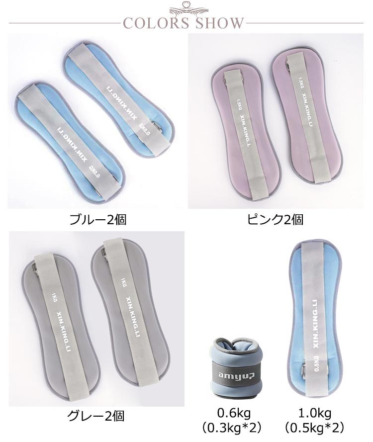 リストウエイト アンクルウエイト 0.6kg 1kg 2個 セット 自宅 宅トレ 筋トレ グッズ トレーニング パワーリスト パワーアンクル リストバンド 腕 手首 脚 脚用 足首 足 重り ウェイトトレーニング ダンベル グレー ピンク ブルー 送料無料