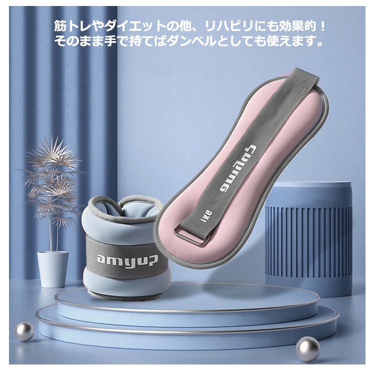 手首足首の筋力UPに!手首や足首に巻き付けるだけ!日常生活が筋トレになる、ウエイトバンド2個セット!普段の運動やトレーニング時に手首や足首につけるだけで、負荷がかかって効率的に筋力アップを目指せます。筋トレやダイエットの他、リハビリにも効果的!そのまま手で持てばダンベルとしても使えます。