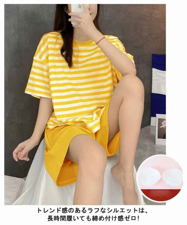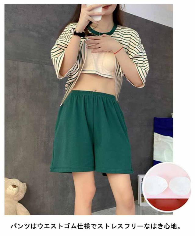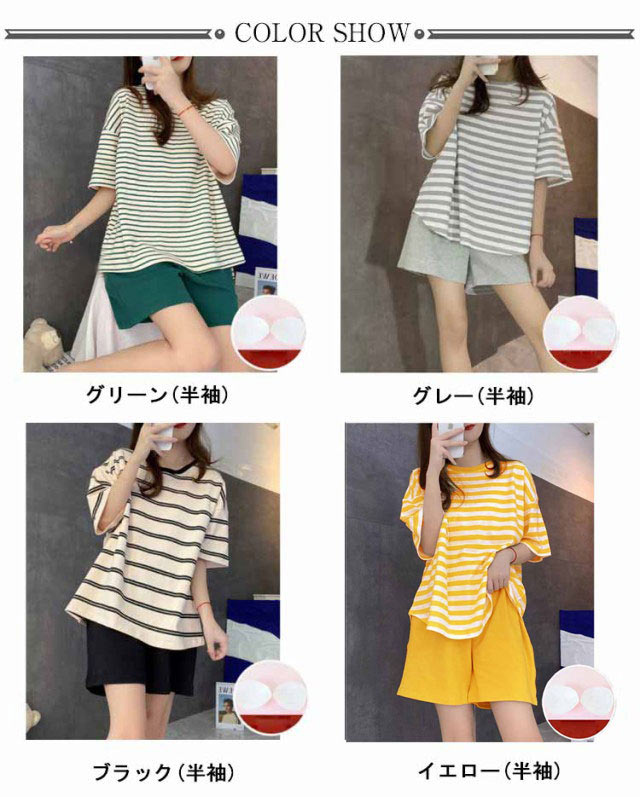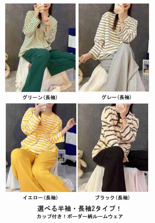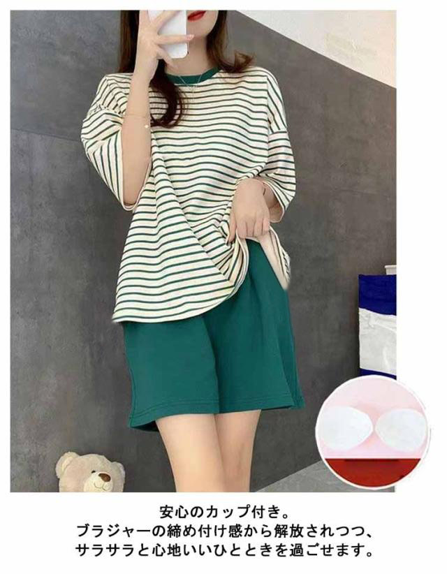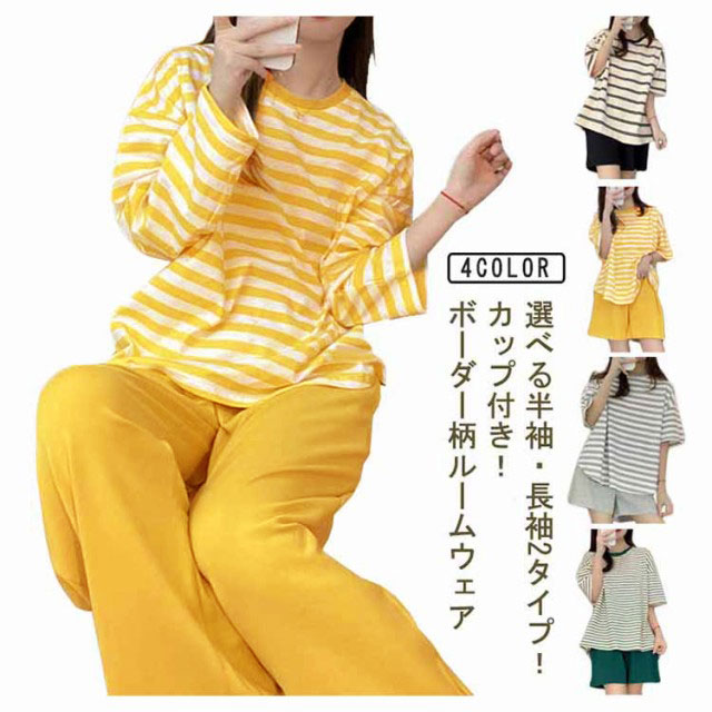 カップ付き パジャマ レディース 上下セット ルームウェア 部屋着 ボーダー柄 半袖・長袖 Tシャツ ショートパンツ ロングパンツ 2点セット ナイトウェア リラックス 寝間着 寝巻き 可愛い 通気性 柔らかい 女性用 婦人用 母の日 春夏 送料無料