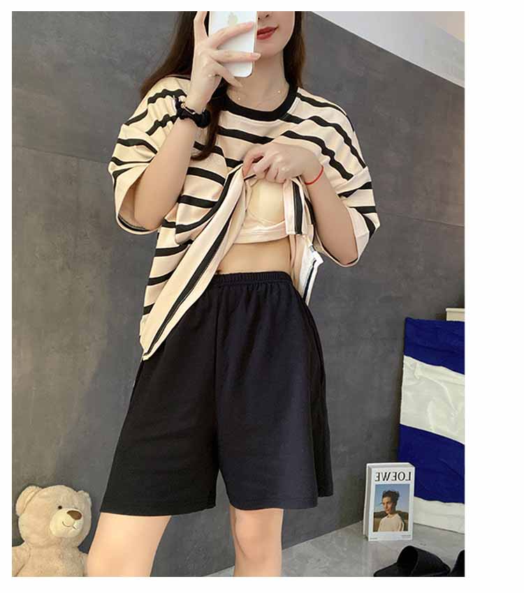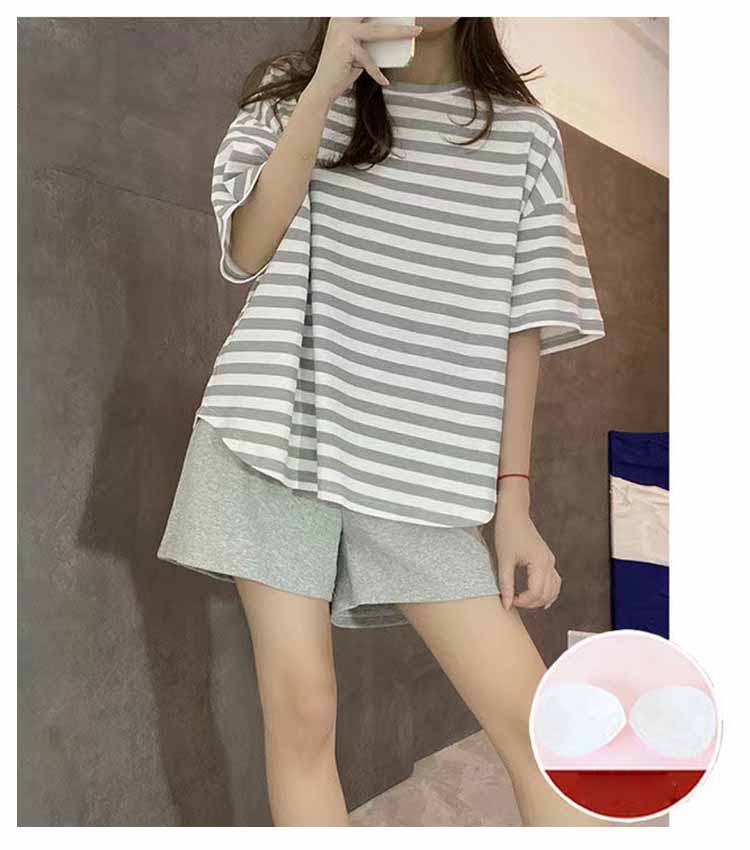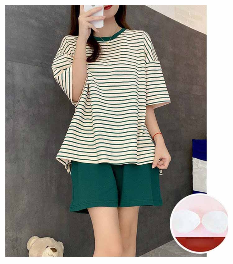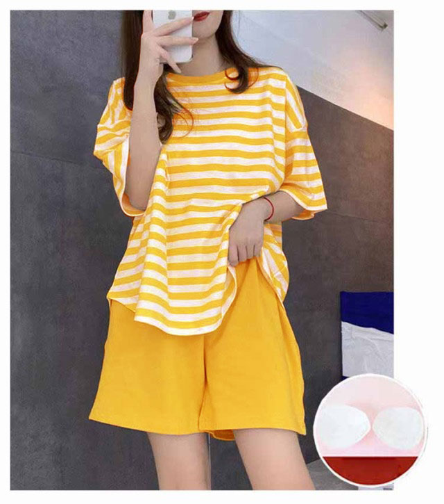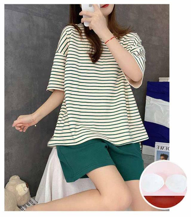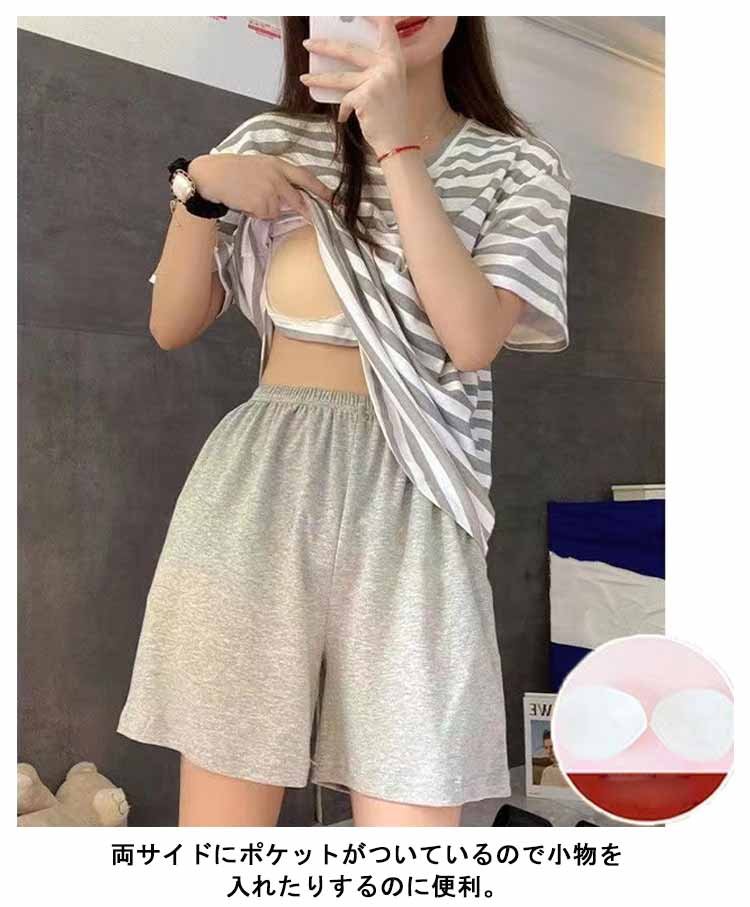 カップ付き パジャマ レディース 上下セット ルームウェア 部屋着 ボーダー柄 半袖・長袖 Tシャツ ショートパンツ ロングパンツ 2点セット ナイトウェア リラックス 寝間着 寝巻き 可愛い 通気性 柔らかい 女性用 婦人用 母の日 春夏 送料無料