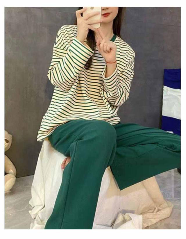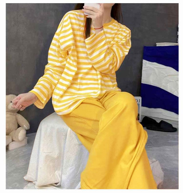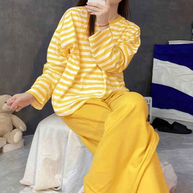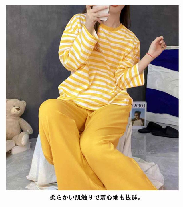 | 選べる半袖?長袖2タイプ!カップ付き!ボーダー柄ルームウェア シンプルなボーダー柄のトップスと無地のボトムスを組み合わせたルームウェアです。 柔らかい肌触りで着心地も抜群。 安心のカップ付き。ブラジャーの締め付け感から解放されつつ、サラサラと心地いいひとときを過ごせます。 パンツはウエストゴム仕様でストレスフリーなはき心地。 両サイドにポケットがついているので小物を入れたりするのに便利。 トレンド感のあるラフなシルエットは、長時間履いても締め付け感ゼロ! 夏のリラックス時間には、カップ付きのルームウェアがおススメ。 | |