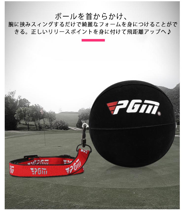 | ボールを首からかけ、腕に挟みスィングするだけで綺麗なフォームを身につけることができる。正しいリリースポイントを身に付けて飛距離アップへ? スイングの矯正や姿勢改善ができる?ゴルフスイングのトレーニングボールが登場。 軽量で持ち運びしやすく、場所を取らないので自宅でも簡単にトレーニングができるのも魅力的。 付属の空気入れでボールを膨らませば、届いてすぐ使えるのも嬉しいポイント。 | |