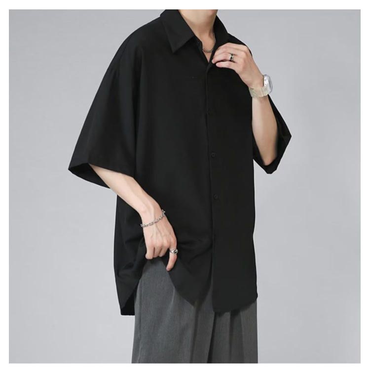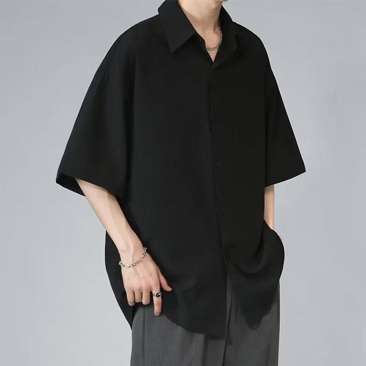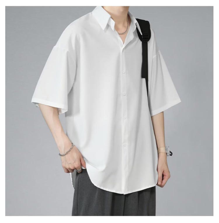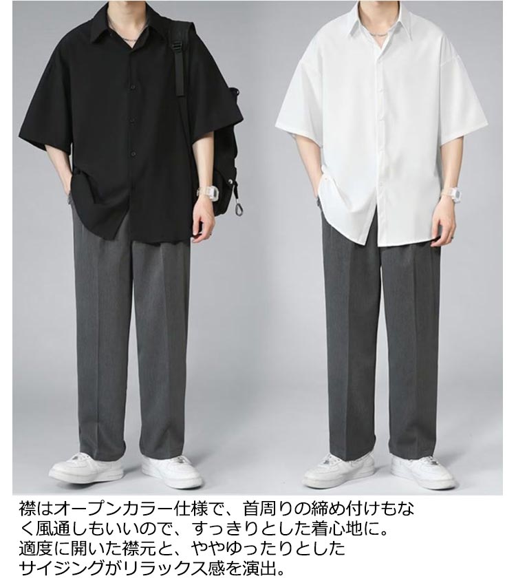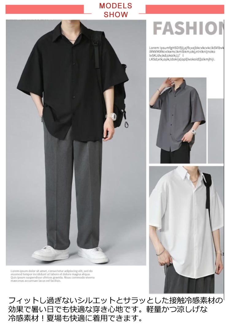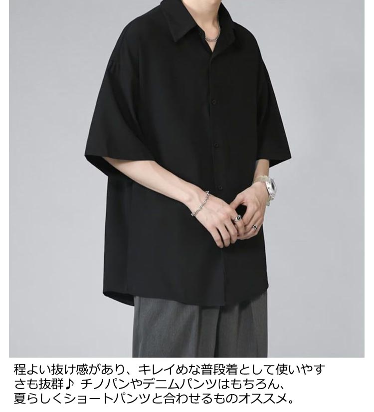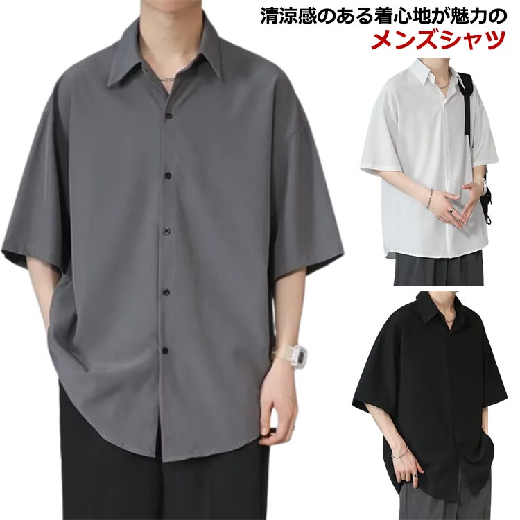 半袖シャツ メンズ シャツ 半袖 涼しい 接触冷感 オーバーサイズ アイスシルクシャツ ドルマン シワにならない ビッグシルエット オーバーサイズ 半袖シャツ ロングシャツ ビッグシャツ 無地 とろみ 父の日 ギフト 送料無料