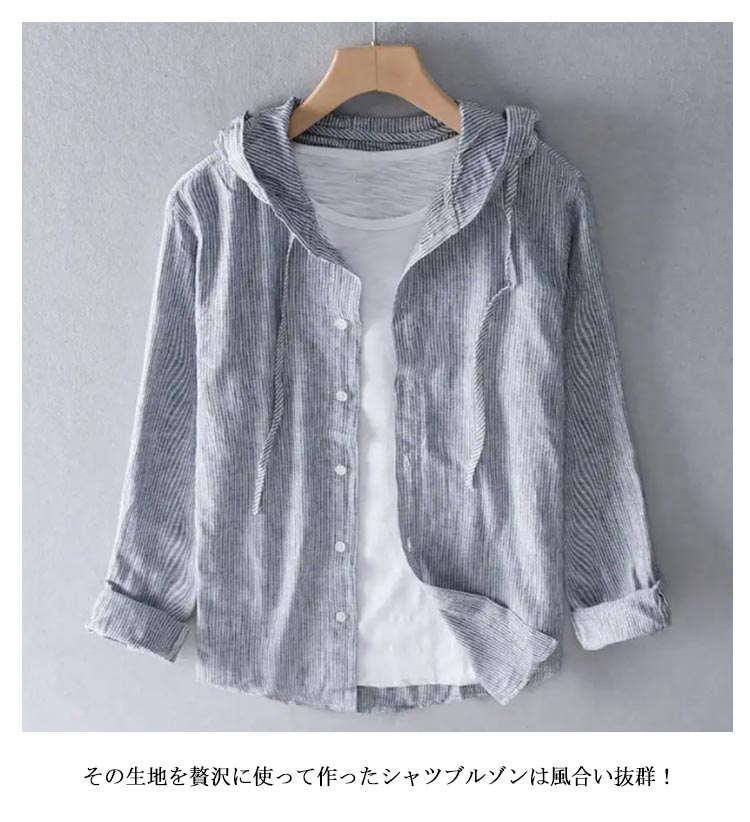 シャツジャケット リネンシャツ フード付き メンズ 夏 ブルゾン 長袖 トップス シャツ トライプ柄 無地 カジュアルシャツ 薄手 麻 リネン 夏物 涼しい カーディガン 羽織り 春服 秋 アウター 大きいサイズ【送料無料】