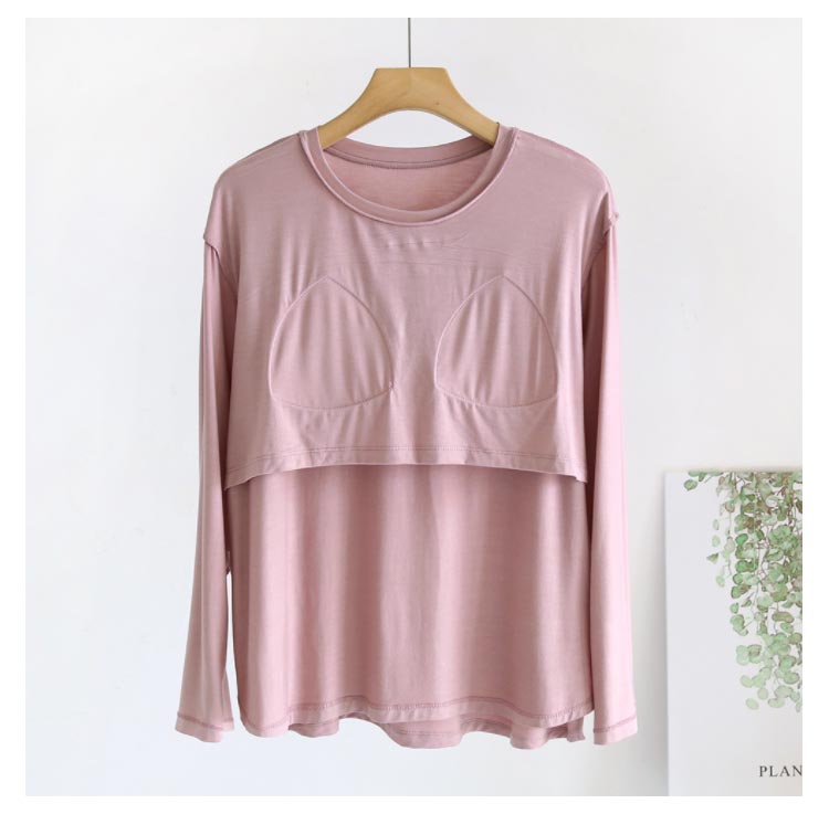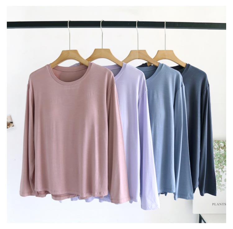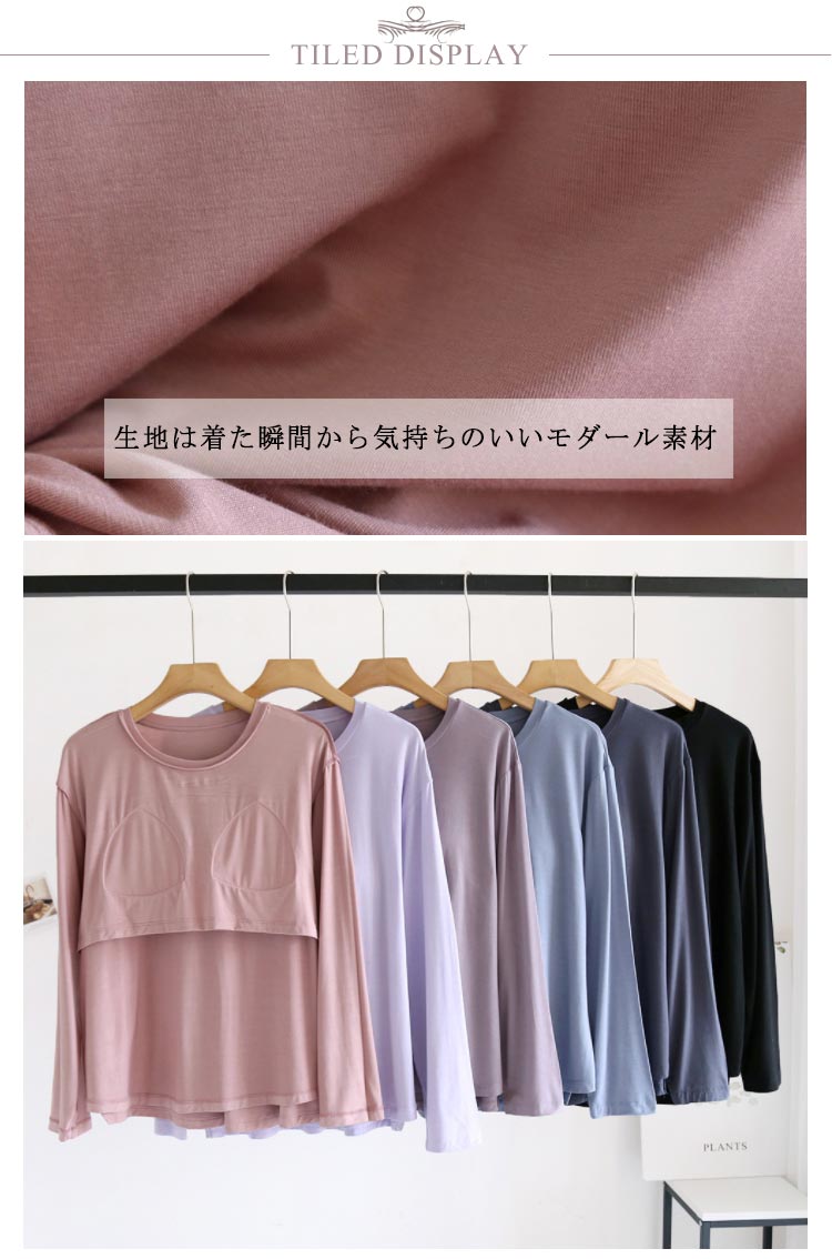 アンダーゴムなしカップ付き!長袖モーダルtシャツ