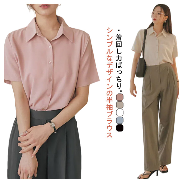 ブラウス レディース 半袖 シャツ ワイシャツ 半袖 事務服 おしゃれ yシャツ レギュラー 開襟 襟付き ブラウス 大人 トップス 前開き レギュラーカラー フェミニン オフィスカジュアル フォーマル 入学式 卒業式 かわいい