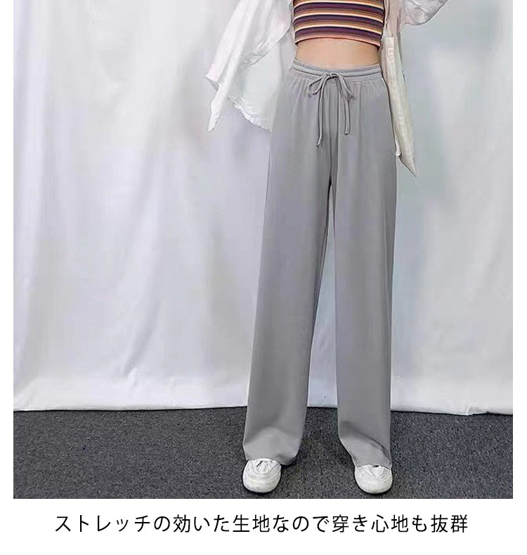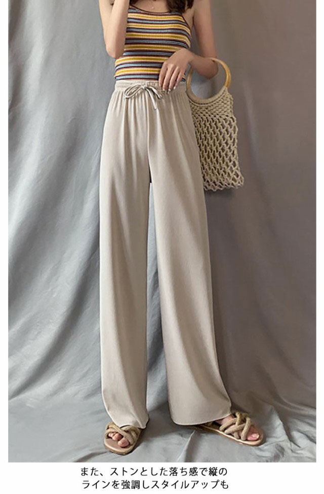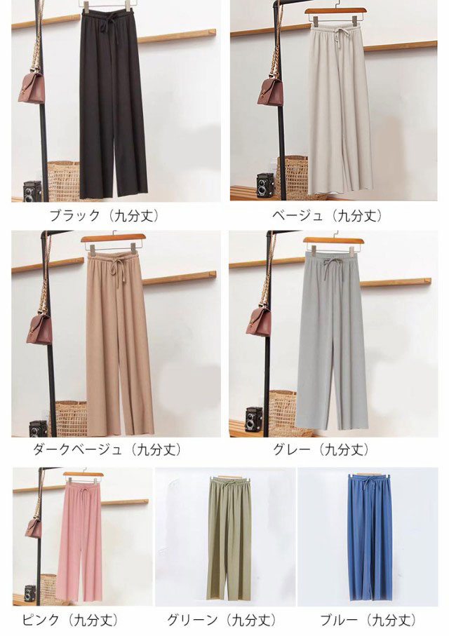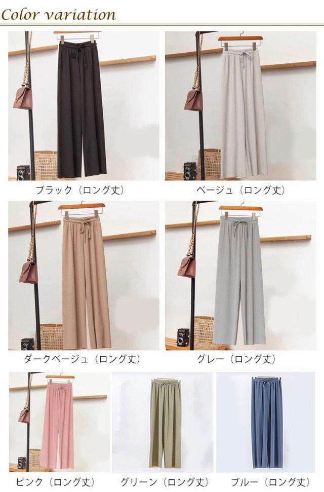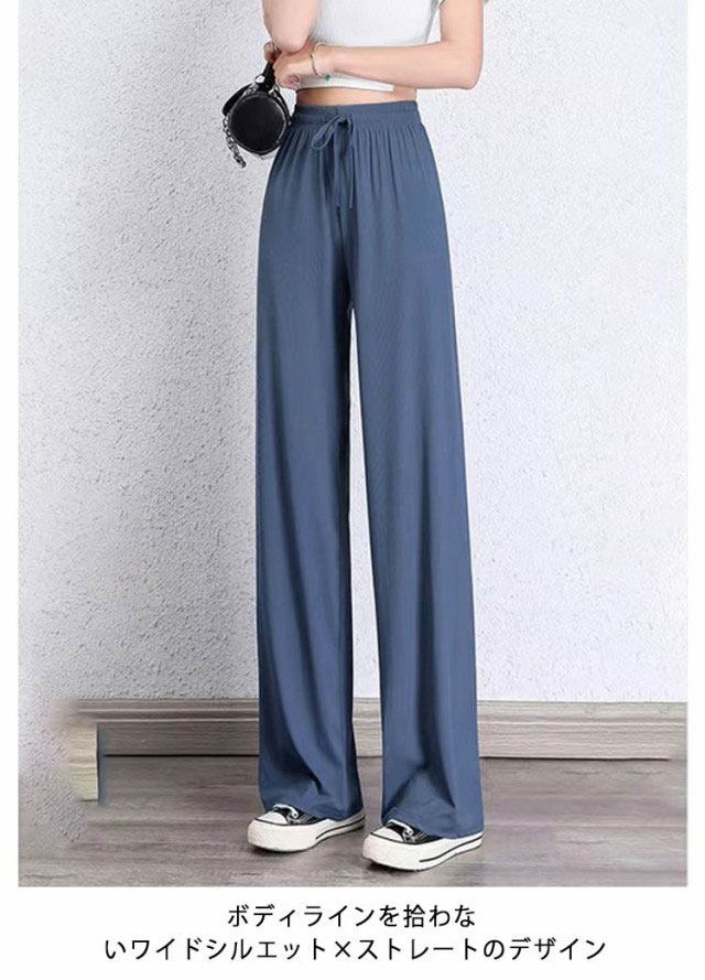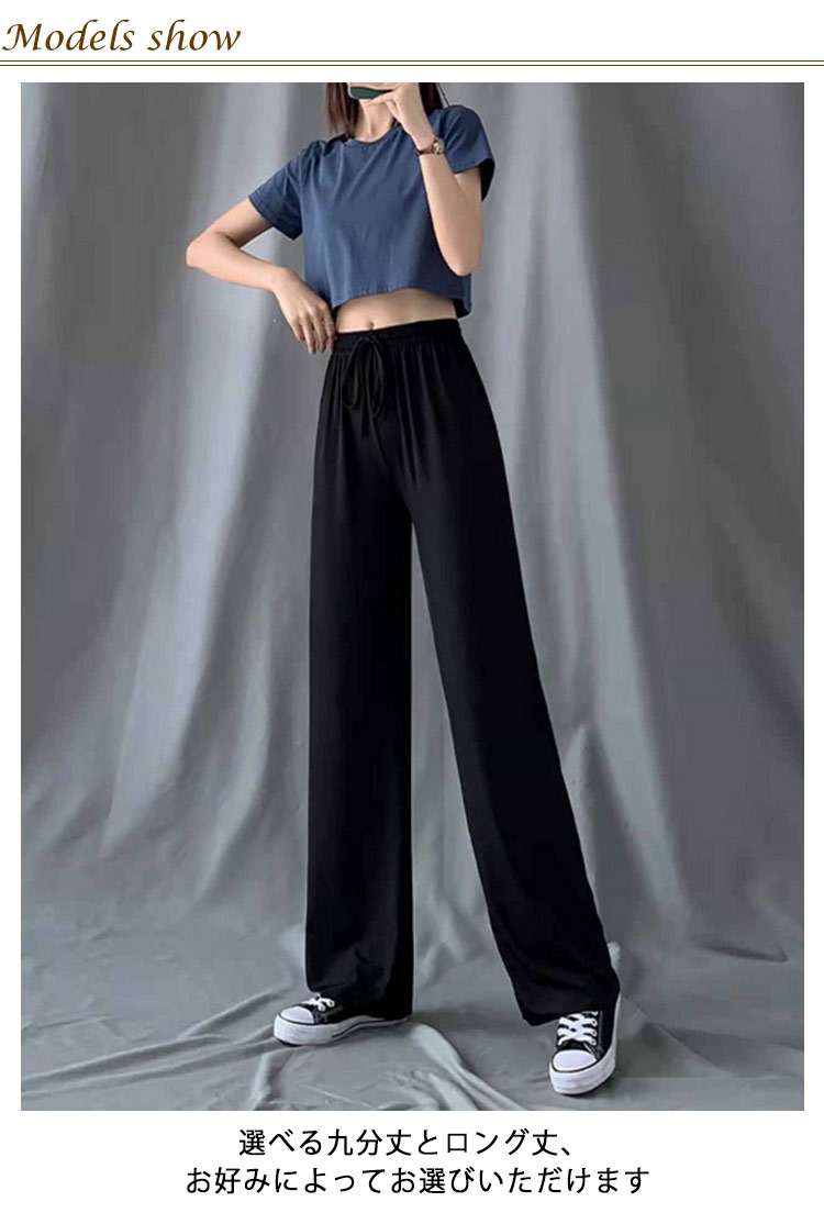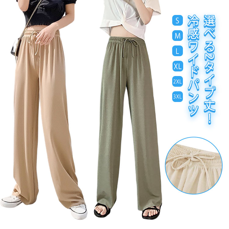 選べる2タイプ丈 接触冷感 ワイドパンツ ロング丈 9分丈 レディース ガウチョパンツ ひんやり ストレッチ ボトムス リラックス イージーパンツ きれいめ ストレートパンツ 夏 薄手 ウエストゴム ロングパンツ カジュアル 部屋着 大きいサイズ 送料無料