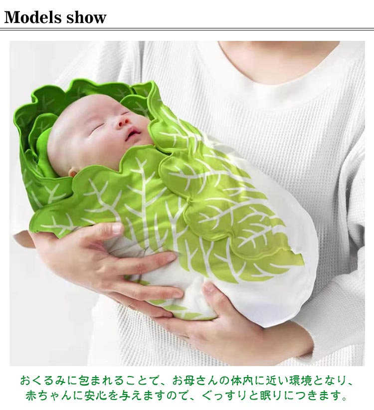 SNSで話題の白菜型おくるみ♪85×85cm100×100cm120×120cm高品質の生地と柔らかい素材で作られています。それはあなたの赤ちゃんを毎日の使用のためにより快適にすることができます!おくるみに包まれることで、お母さんの体内に近い環境となり、赤ちゃんに安心を与えますので、ぐっすりと眠りにつきます。柔らかいぬいぐるみおくるみ毛布は、ベビーカーの毛布、保育園、多目的毛布、寝袋としてお使いいただけますので、お子様の安全と暖かさを実感できます。プレイマット、ベビーカーの日よけカバー、ベビーバスタオル、タオルケット、ガーゼケット、授乳ケープ、おむつ替えシーツなどいろいろな場面で多機能にお使い頂けます。白菜の見た目、とても可愛いですので、出産祝いや出産準備のプレゼントにおすすめです。