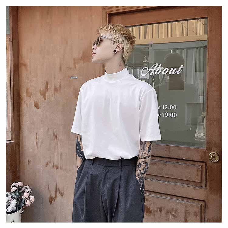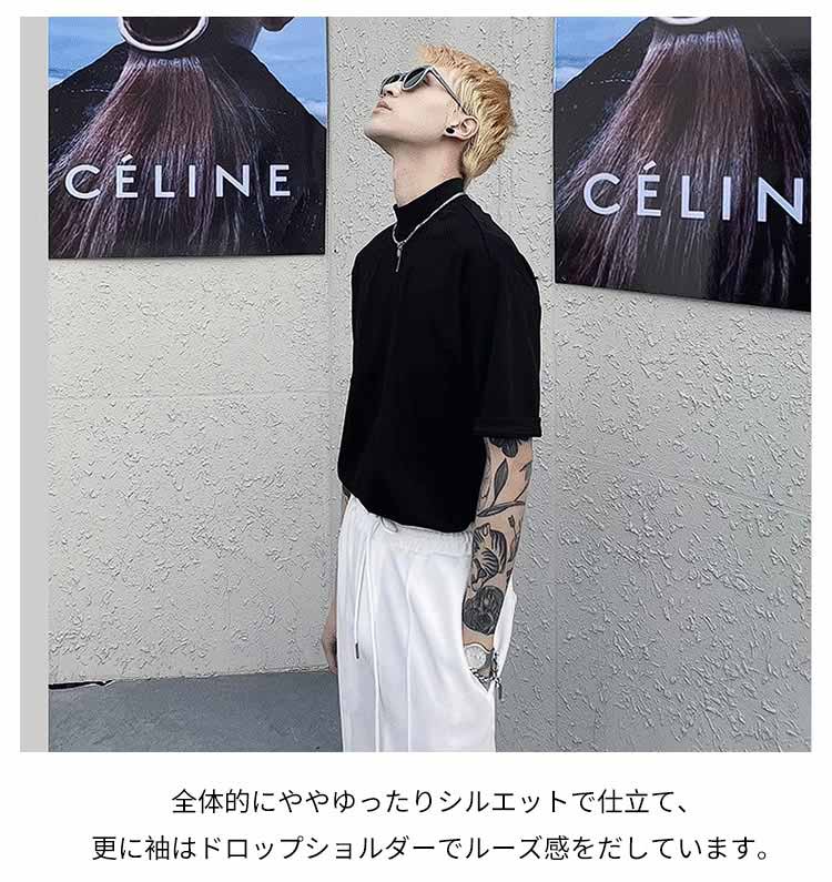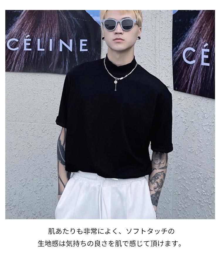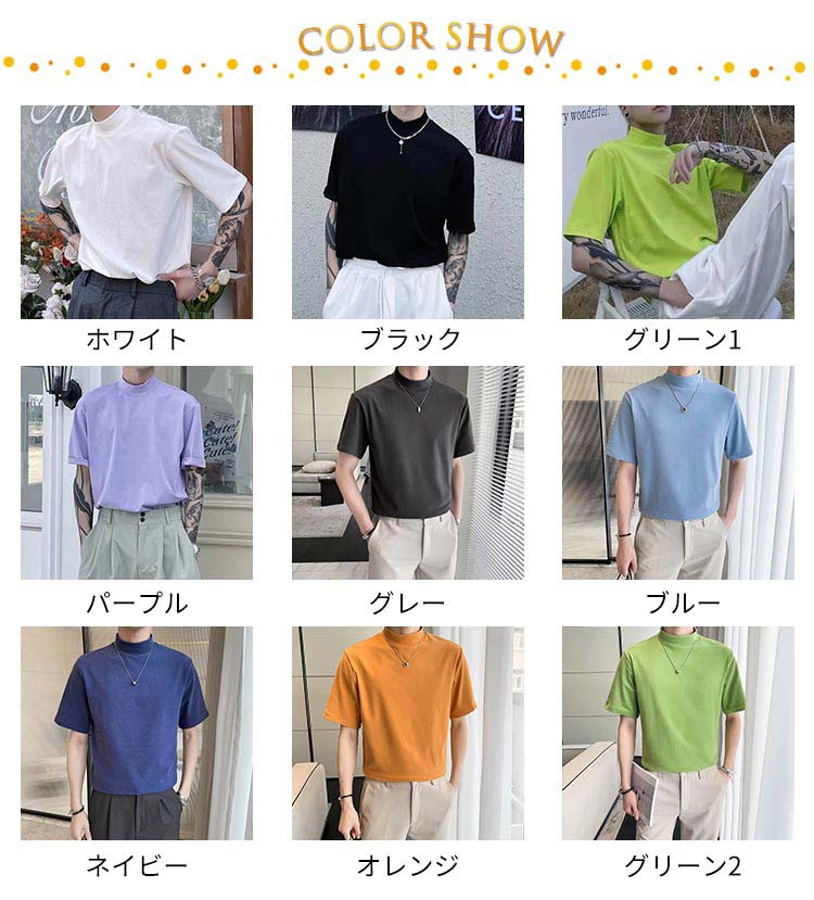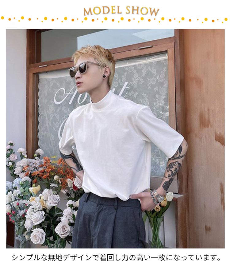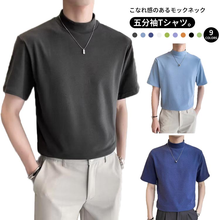 ハイネック Tシャツ メンズ 半袖tシャツ 五分袖 夏 ティーシャツ モックネック ゆったり カジュアル トップス 無地 シンプル ゆったり 体型カバー インナー 大きいサイズ カットソー ゴルフ カジュアル おしゃれ 春夏 春 夏 送料無料