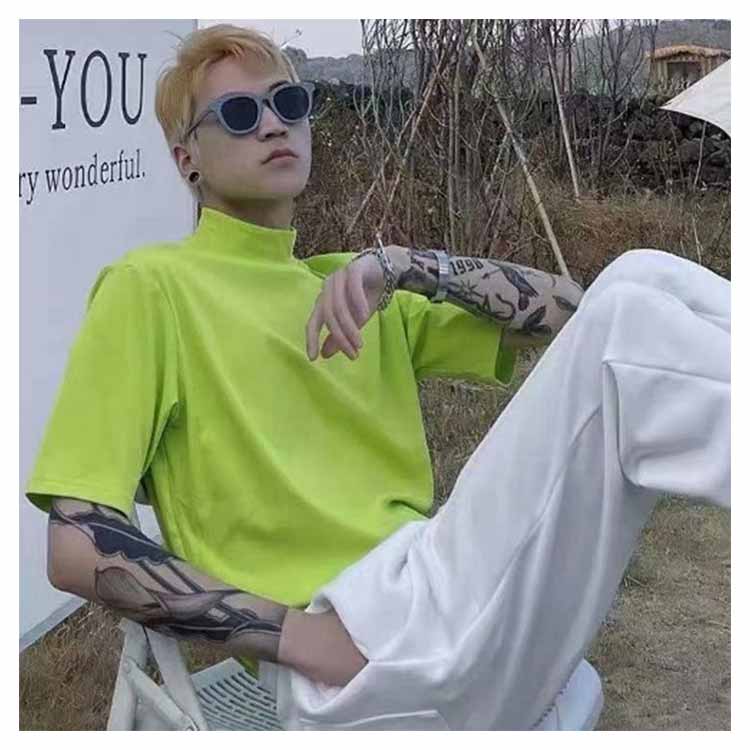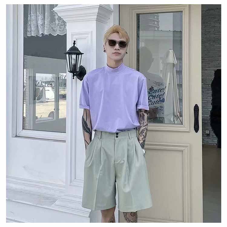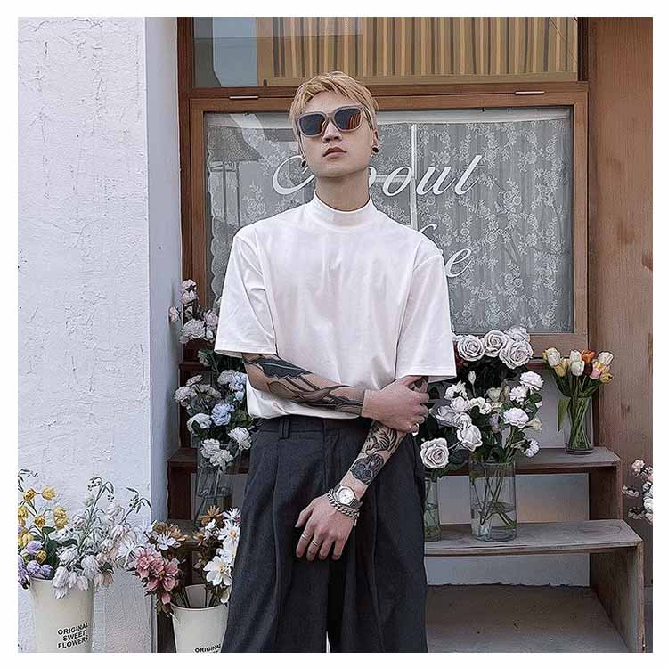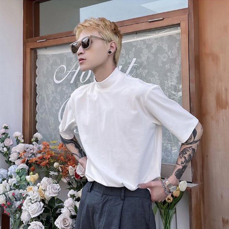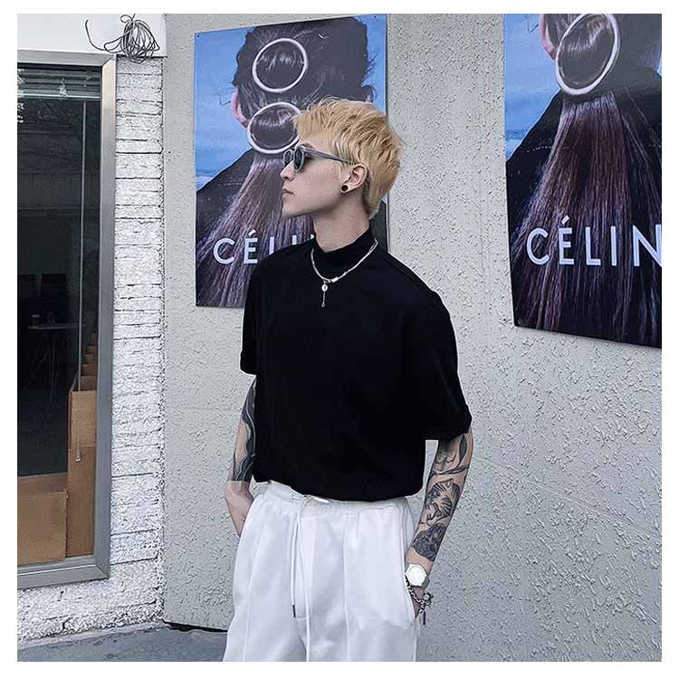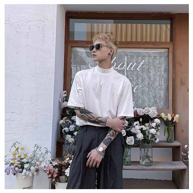 ハイネック Tシャツ メンズ 半袖tシャツ 五分袖 夏 ティーシャツ モックネック ゆったり カジュアル トップス 無地 シンプル ゆったり 体型カバー インナー 大きいサイズ カットソー ゴルフ カジュアル おしゃれ 春夏 春 夏 送料無料