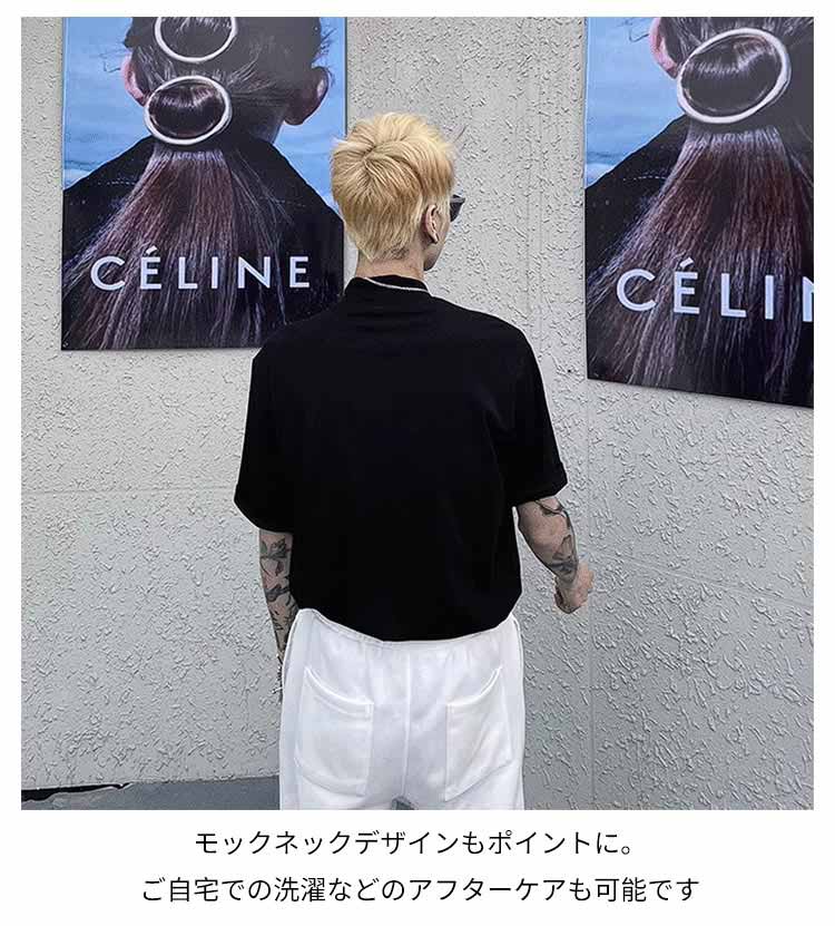 こなれ感のあるモックネック五分袖Tシャツ。シンプルな無地デザインで着回し力の高い一枚になっています。肌あたりも非常によく、ソフトタッチの生地感は気持ちの良さを肌で感じて頂けます。全体的にややゆったりシルエットで仕立て、更に袖はドロップショルダーでルーズ感をだしています。モックネックデザインもポイントに。ご自宅での洗濯などのアフターケアも可能です