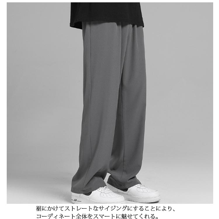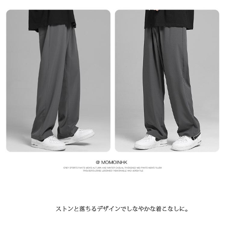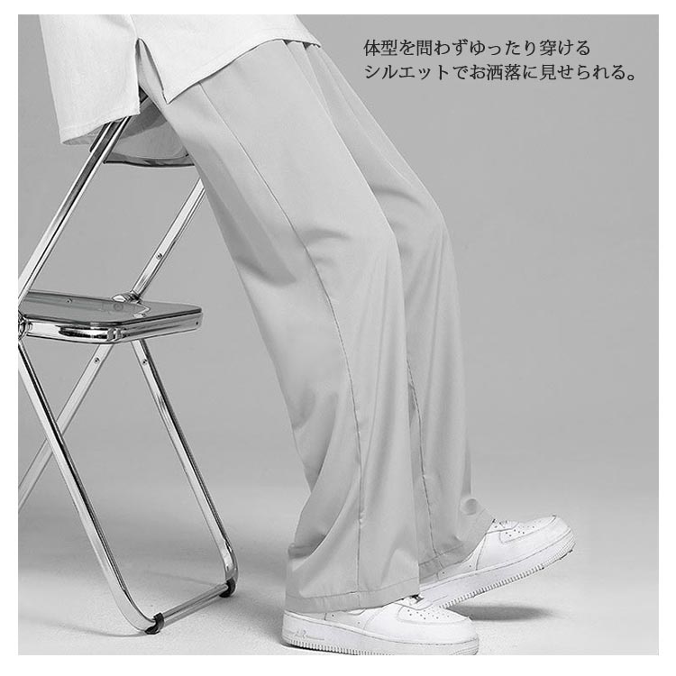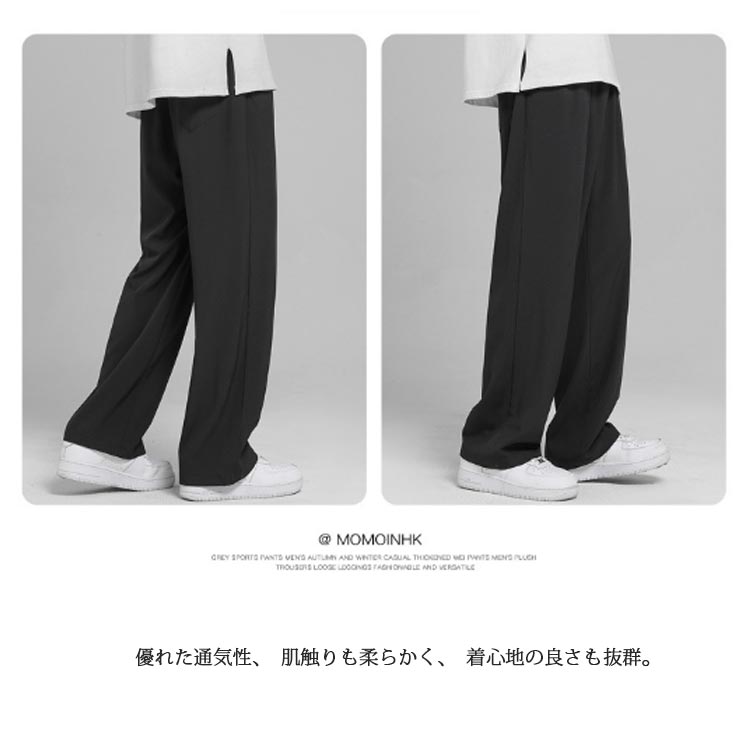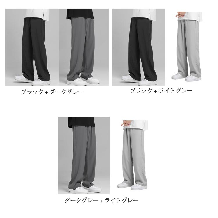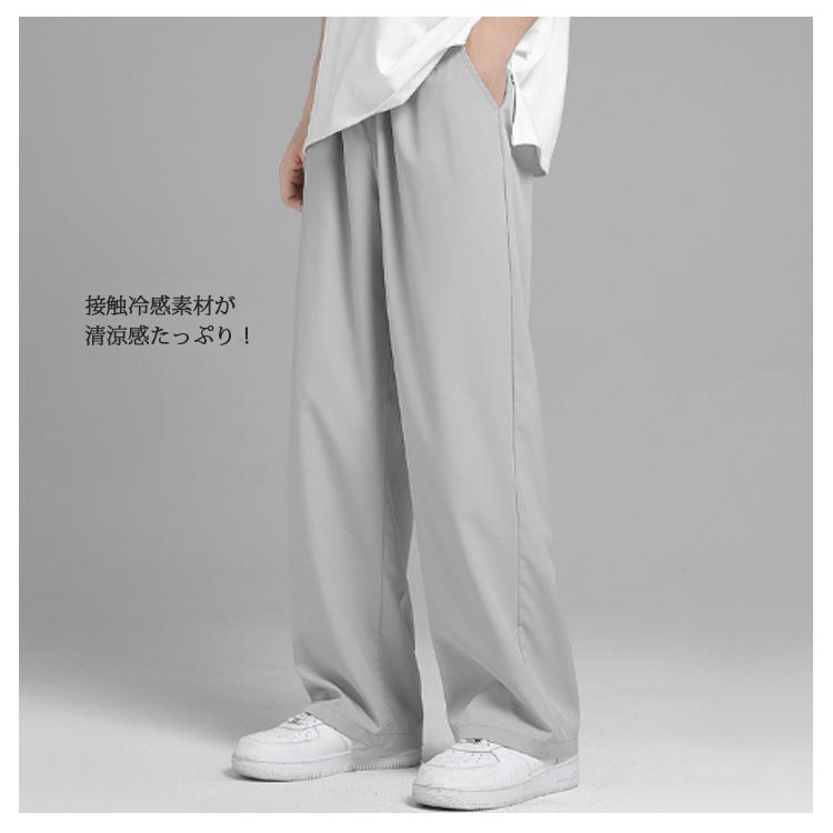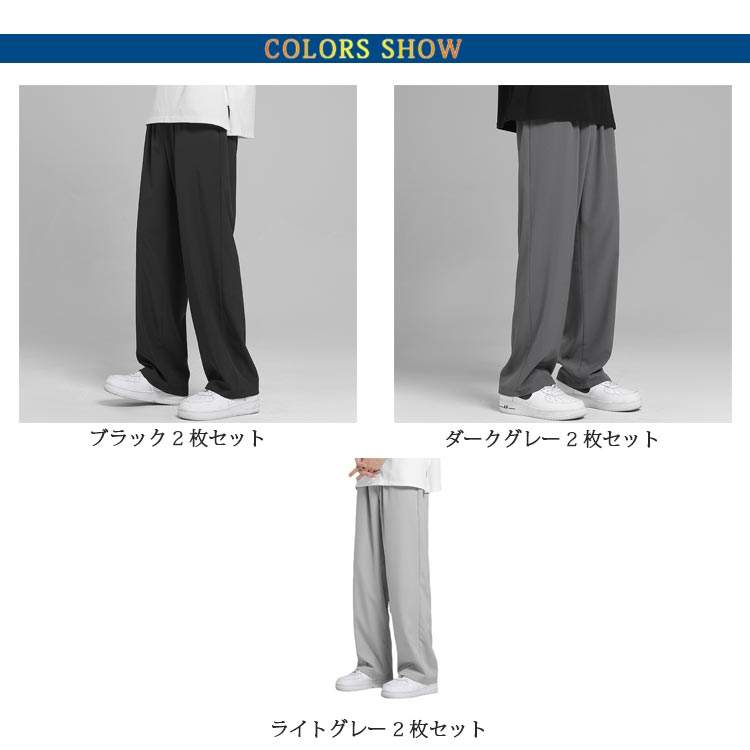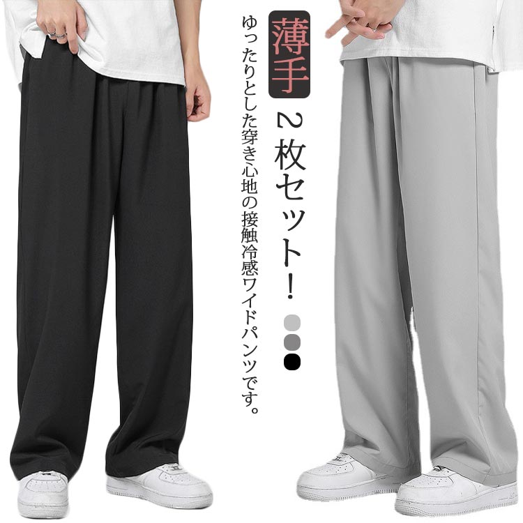 2枚セット 接触冷感 ワイドパンツ メンズ ガウチョパンツ カジュアルパンツ ロング丈 パンツ チノパン 涼しいパンツ ストレートパンツ 長ズボン 薄手 ゆったり 大きいサイズ ロングパンツ 春 夏 ボトムス 部屋着 速乾 無地 韓国ファッション おしゃれ 送料無料 M-3XL