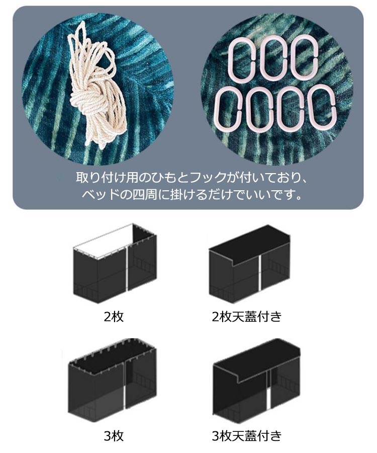 | サイズ | 1.2*2M2枚 1.2*2M2枚(天蓋付き) 1.2*2M3枚 1.2*2M3枚(天蓋付き) 1.5*2M2枚 1.5*2M3枚 1.5*2M2枚(天蓋付き) |