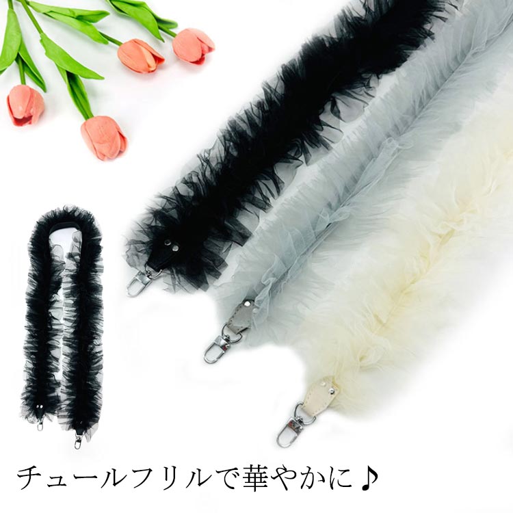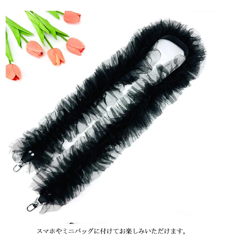 チュールフリルストラップ チュール フリル ストラップ バッグストラップ スマートフォン落下防止 携帯 携帯ストラップ ショルダーストラップ スマホショルダー アクセサリー チュール ギャザー 肩がけ 斜め掛け ネックストラップ トレンド おしゃれ かわいい