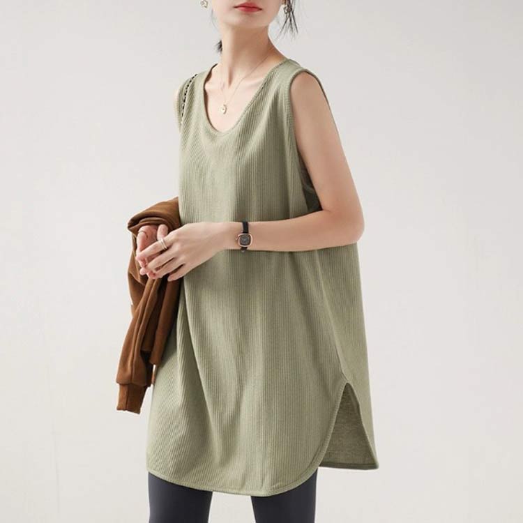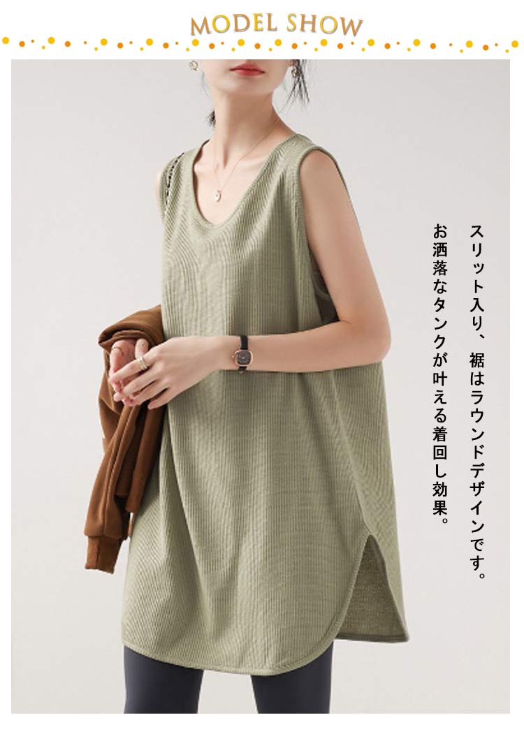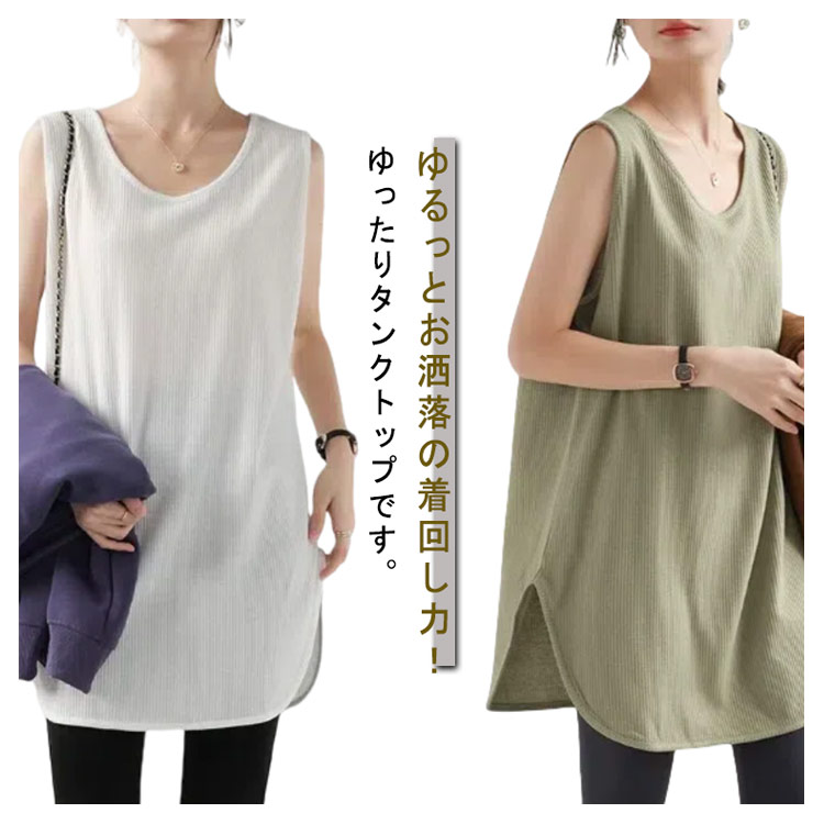 ゆるっとお洒落の着回し力!ゆったりタンクトップです。ワッフルの生地にもこだわり、柔らかい生地を使用しました。スリット入り、裾はラウンドデザインです。お洒落なタンクが叶える着回し効果。これさえあれば、もう迷わない。羽織のインナーとしても重ね着スタイルにも、魅力を発揮してくれる、カジュアルシルエット!オシャレなレイヤードスタイルが即完成しちゃう優秀アイテムです。