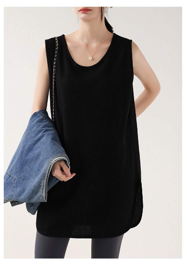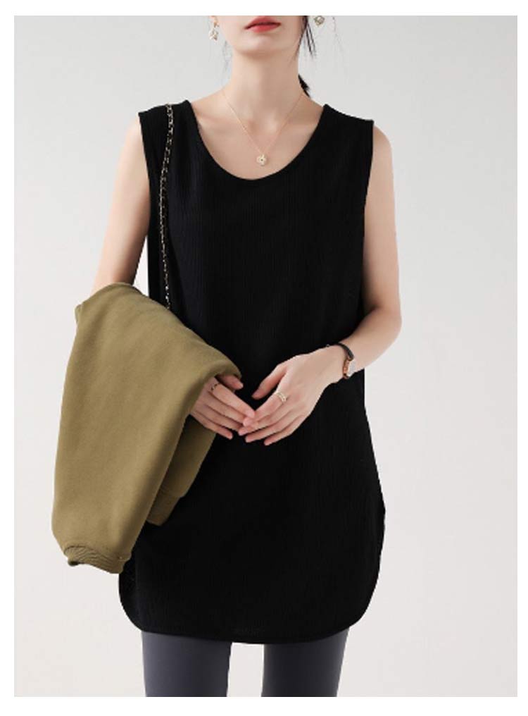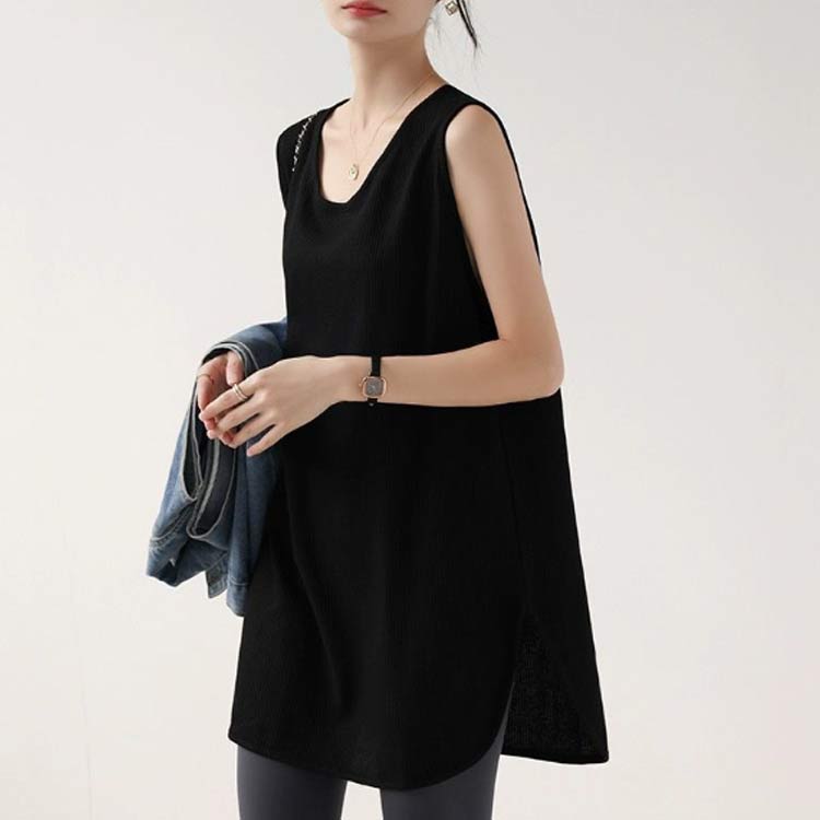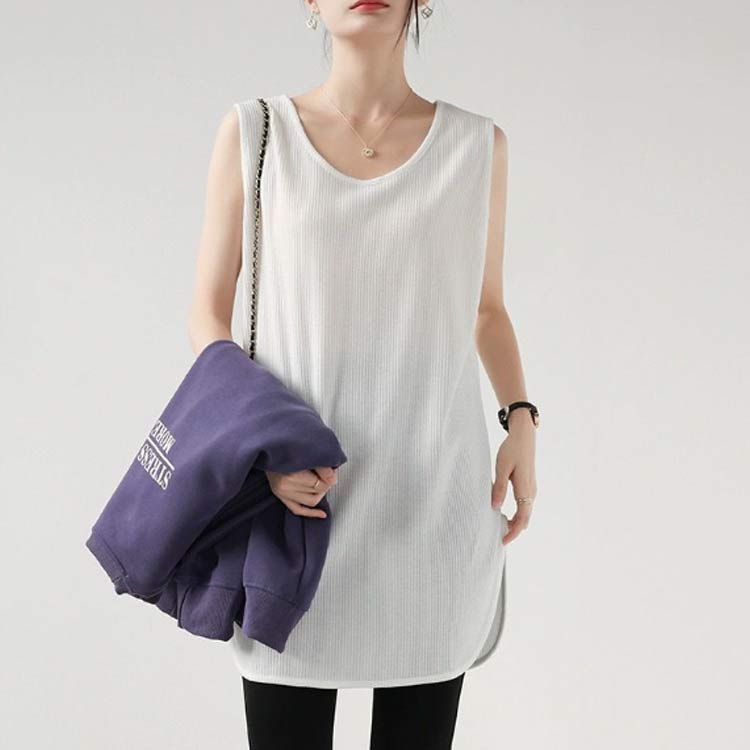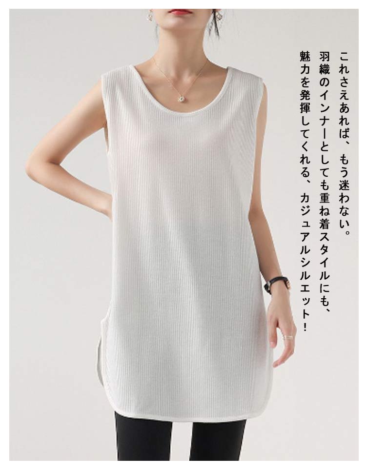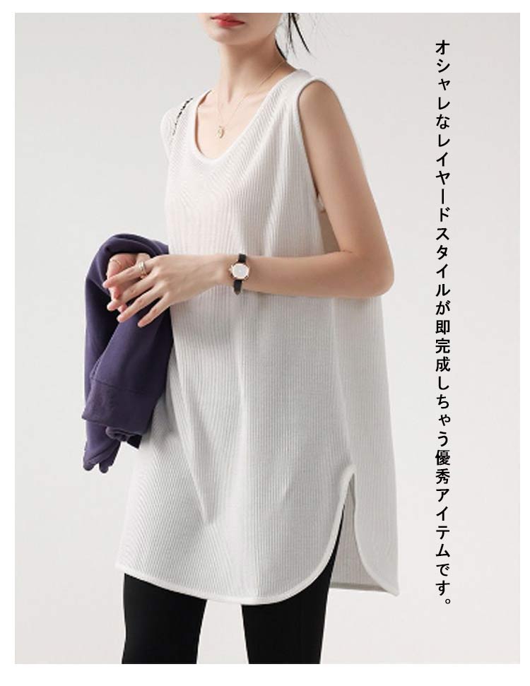 レイヤード タンクトップ レディース 重ね着 インナー Tシャツ ノースリーブ 裾ラウンド タンクトップ ロング トップス 春夏 大きいサイズ 丸裾 無袖 カットソー 無地 薄手 おしゃれ カジュアル シンプル スリット入り M L XL 2XL M L XL 2XL 3XL 4XL