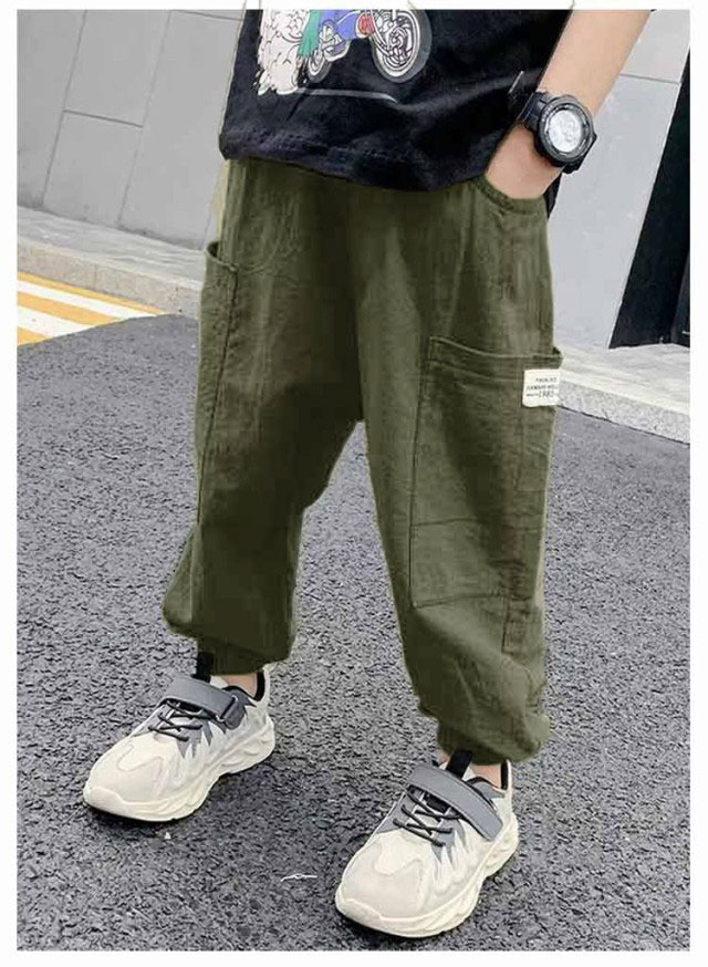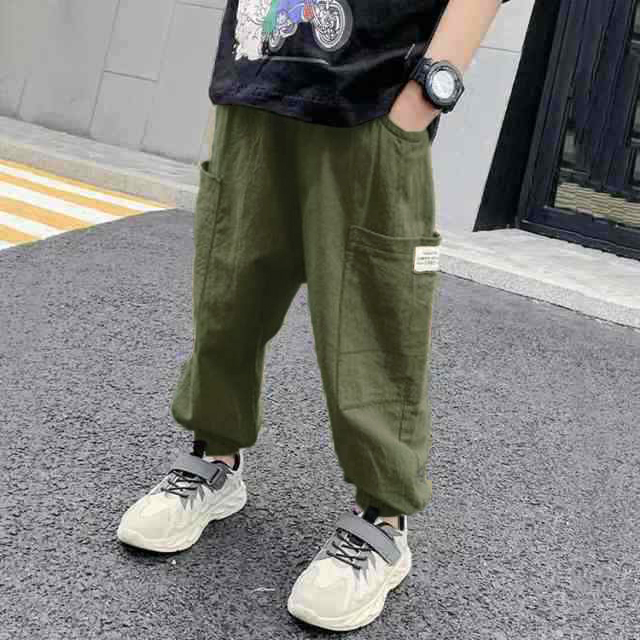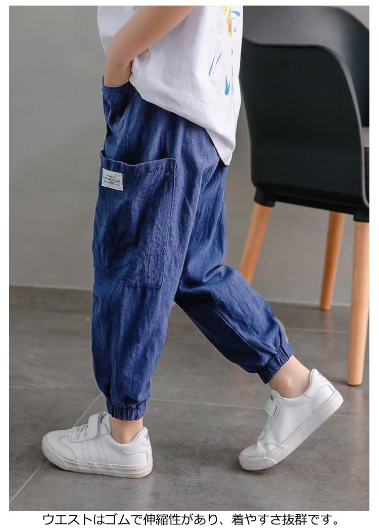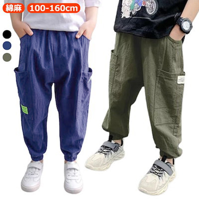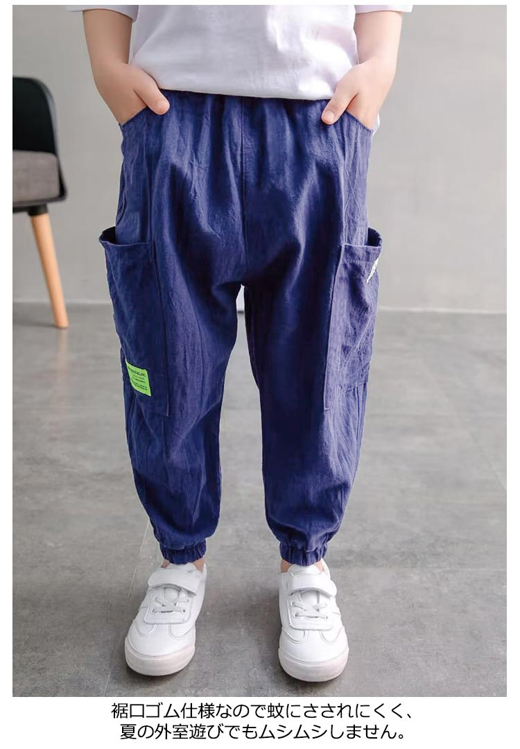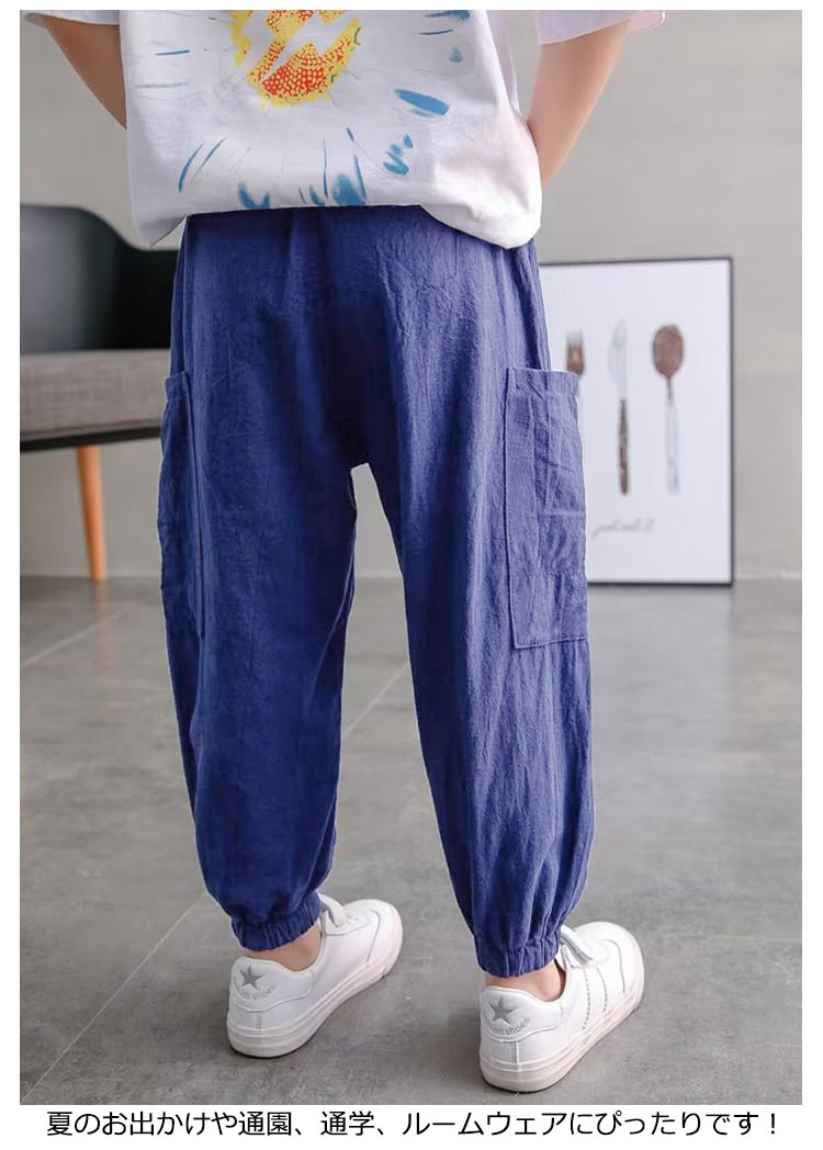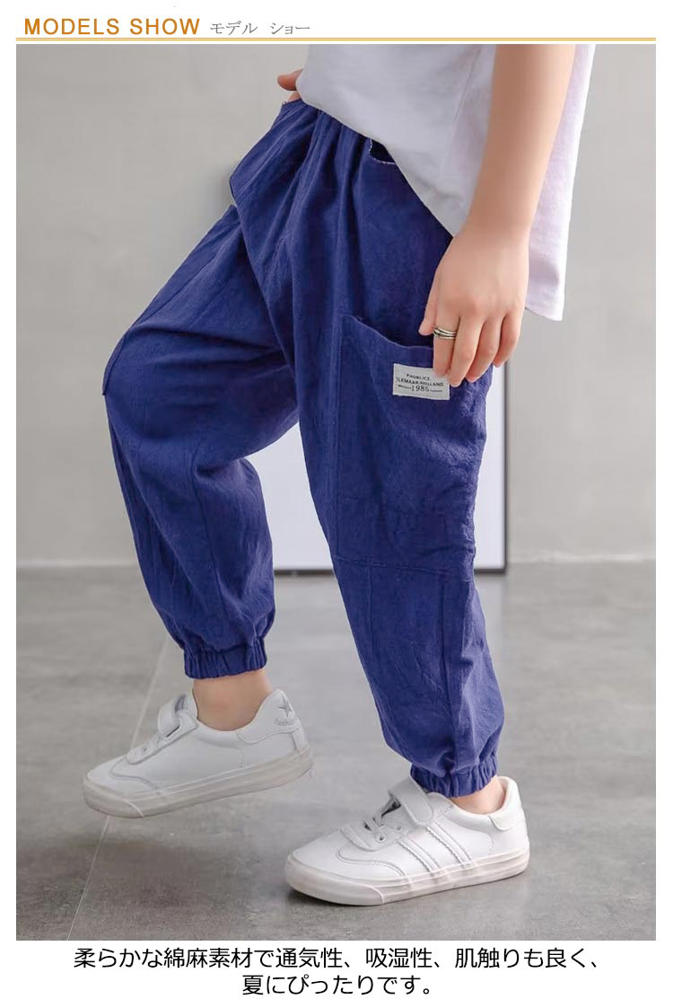 送料無料 虫よけ カジュアルパンツ 男の子 綿麻 ロングパンツ パンツ サルエルパンツ 中学生 薄手 ジュニア 子供服 通学 春夏 カジュアルパンツ 長ズボン ウエストゴム 裾ゴム 子供パンツ 通園 ゆったり 100 110 120 130 140 150 160