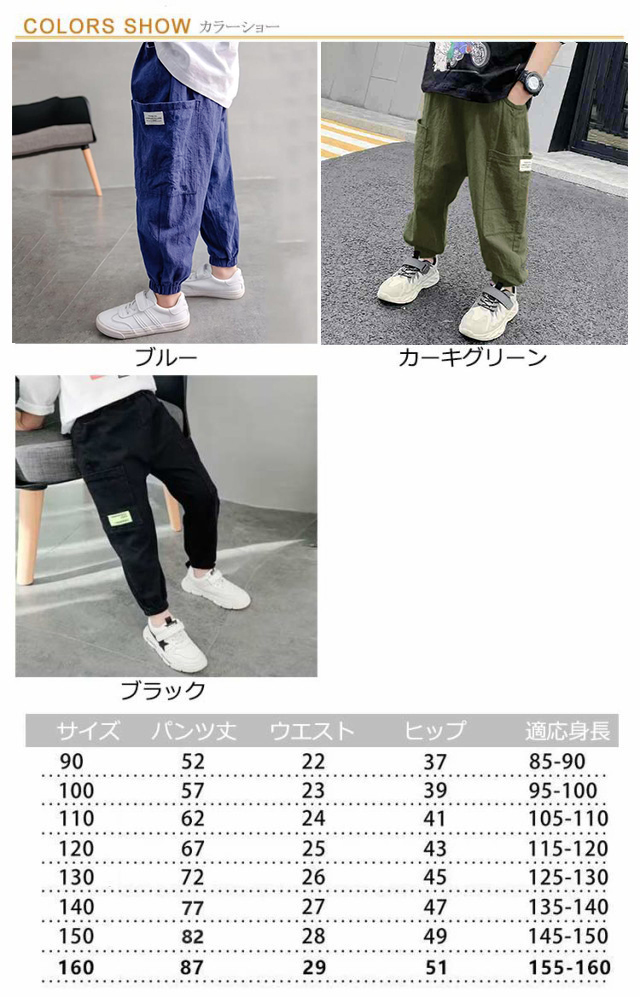 | 綿麻 100cm 110cm 120cm 130cm 140cm 150cm 160cm 柔らかな綿麻素材で通気性、吸湿性、肌触りも良く、夏にぴったりです。 裾口ゴム仕様なので蚊にさされにくく、夏の外室遊びでもムシムシしません。 ウエストはゴムで伸縮性があり、着やすさ抜群です。 夏のお出かけや通園、通学、ルームウェアにぴったりです! | |