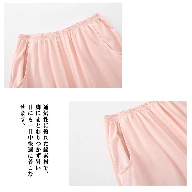 綿 パジャマ ステテコ レディース 春夏 ルームパンツ ルームウェア 部屋着 7分丈 ハーフパンツ ワイドパンツ コットン ひざ下 イージーパンツ ボトムス 涼しい 無地 吸水性 ポケット付 ゆったり 可愛い 大きいサイズ 通気性 リラックス