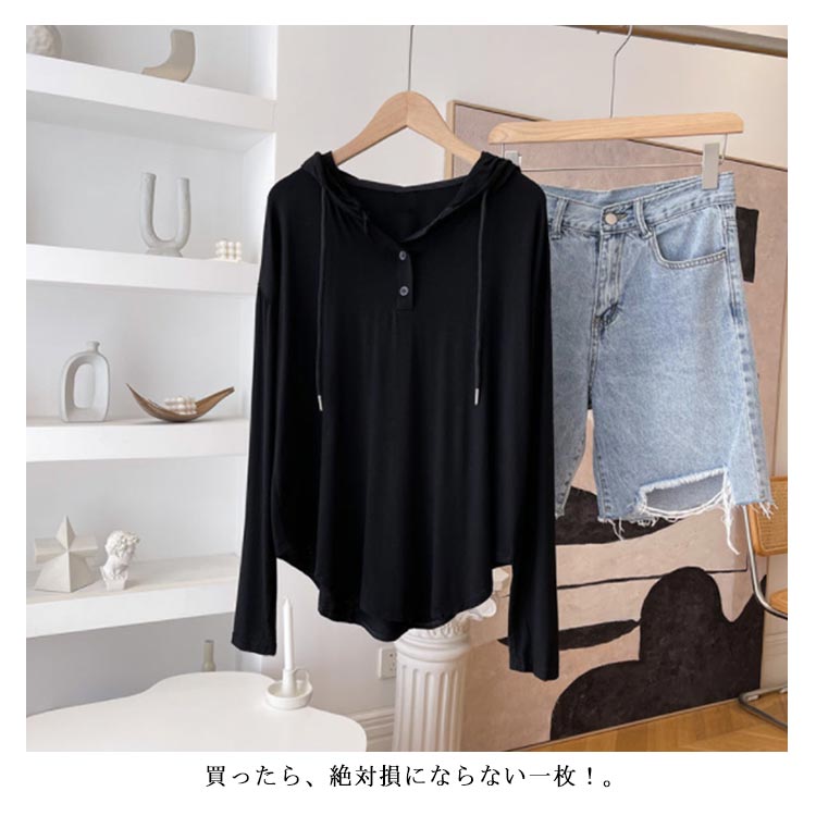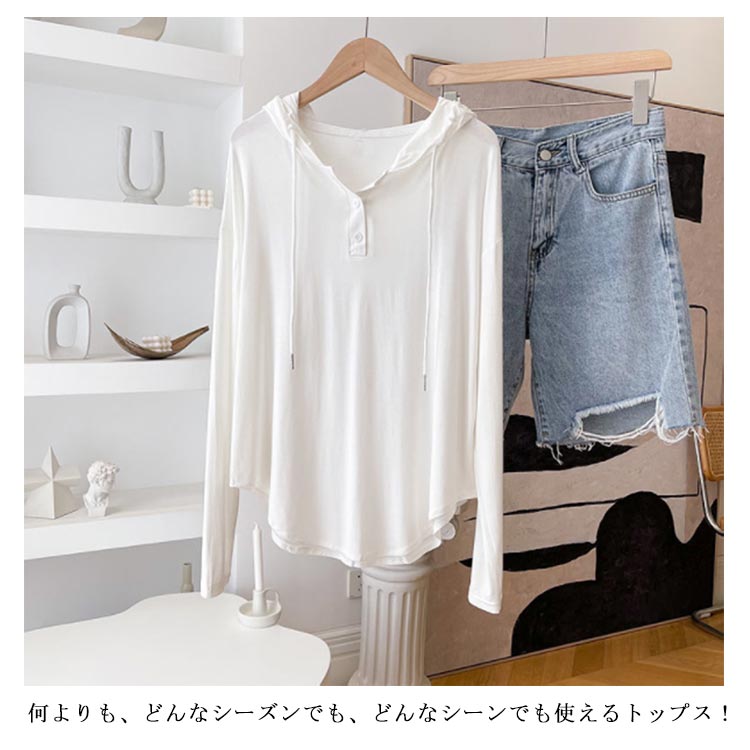 送料無料 パーカー レディース 長袖tシャツ フード付き tシャツ Vネック カットソー プルオーバー ゆったり 春 夏 秋 冬